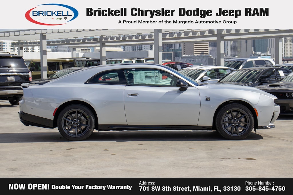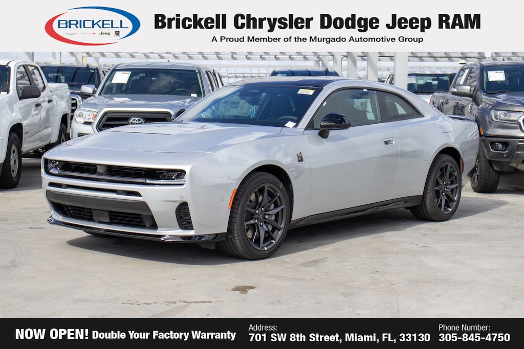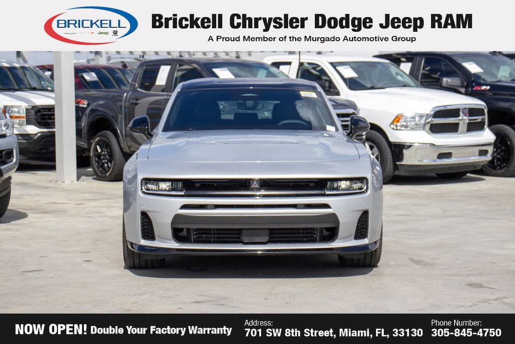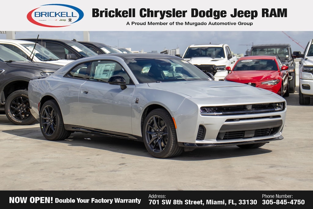 Price includes: $500 - 2026 National 2026 First Responder Bonus Cash . Exp. 01/04/2027 $550 - 2026 National Burning Gas Conquest Bonus Cash. Exp. 03/31/2026 Discover Your Next Vehicle at Brickell Chrysler Dodge Jeep Ram Welcome to Brickell CDJR, where we go beyond selling cars. We double the factory powertrain warranty, giving you added peace of mind. Our dealership offers one of the largest new car inventories in the region, ensuring you find the right vehicle Prices displayed do not included our Perma-plate. Our state-of-the-art service department is the largest in the country and is open seven days a week from 7 AM to 9 PM. Visit us at 701 SW 8th St, Miami, FL 33130, or call 305-777-2800 to learn more and schedule a test drive. The displayed price includes an incentive for financing with Brickell CDJR Finance Company. Outside financing and bank drafts are not accepted. All pre-owned vehicle exports are subject to an export fee. Prices apply only to customers who live, work, or worship in Broward, Miami-Dade, Palm Beach, Monroe, Collier, Hendry, Lee, Glades, Martin, St. Lucie, Okeechobee, Manatee, Hillsborough, Osceola, or Orange County. Customers outside these counties will pay an additional $ Taxes, title, registration, and dealer fees apply. Factory MSRP: $60,175 Triple Nickel 2026 Dodge Charger R/T Scat Pack AWD 8-Speed Automatic HO AWD, Black Artificial Leather.