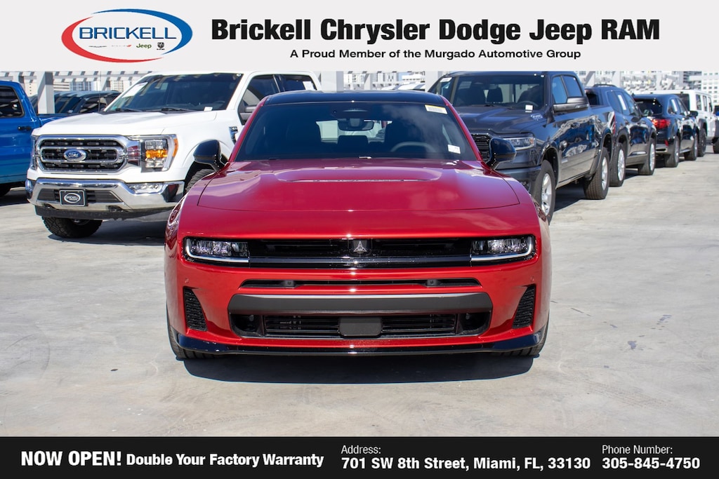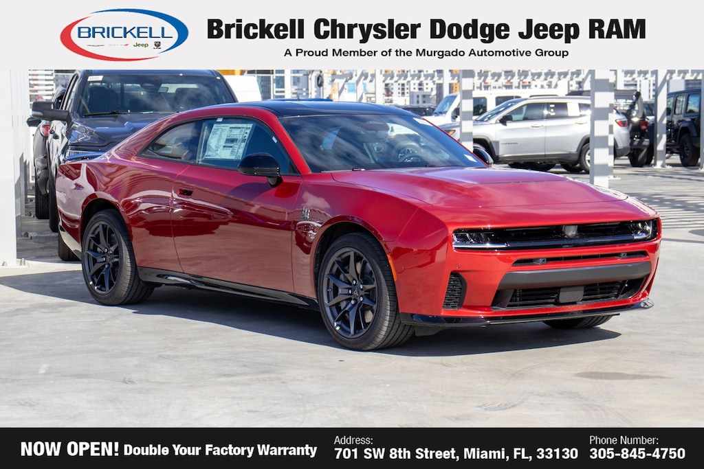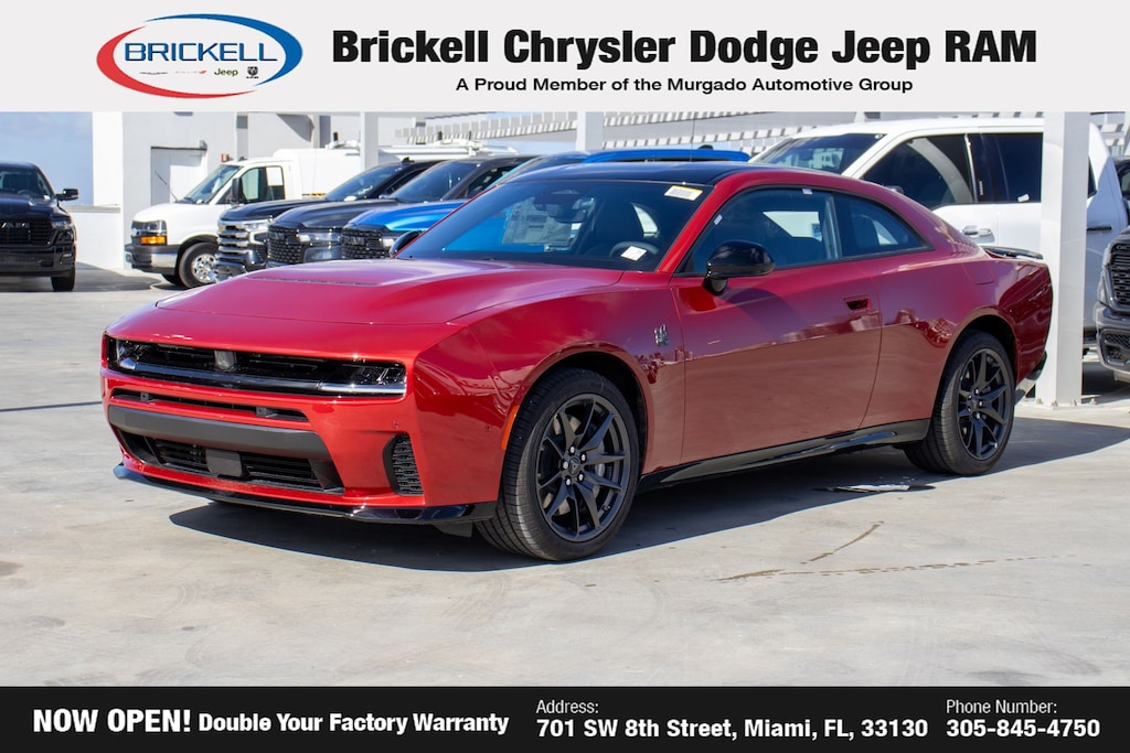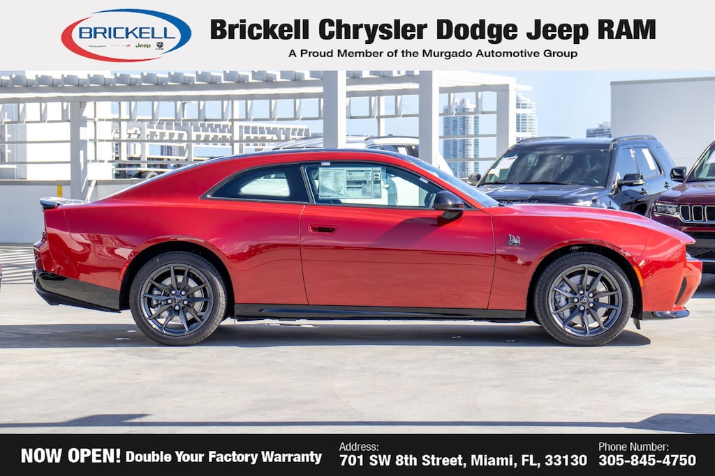 Price includes: $500 - 2026 National 2026 First Responder Bonus Cash . Exp. 01/04/2027 $550 - 2026 National Burning Gas Conquest Bonus Cash. Exp. 03/31/2026 Discover Your Next Vehicle at Brickell Chrysler Dodge Jeep Ram Welcome to Brickell CDJR, where we go beyond selling cars. We double the factory powertrain warranty, giving you added peace of mind. Our dealership offers one of the largest new car inventories in the region, ensuring you find the right vehicle Prices displayed do not included our Perma-plate. Our state-of-the-art service department is the largest in the country and is open seven days a week from 7 AM to 9 PM. Visit us at 701 SW 8th St, Miami, FL 33130, or call 305-777-2800 to learn more and schedule a test drive. The displayed price includes an incentive for financing with Brickell CDJR Finance Company. Outside financing and bank drafts are not accepted. All pre-owned vehicle exports are subject to an export fee. Prices apply only to customers who live, work, or worship in Broward, Miami-Dade, Palm Beach, Monroe, Collier, Hendry, Lee, Glades, Martin, St. Lucie, Okeechobee, Manatee, Hillsborough, Osceola, or Orange County. Customers outside these counties will pay an additional $ Taxes, title, registration, and dealer fees apply. Factory MSRP: $60,175 Redeye 2026 Dodge Charger R/T Scat Pack AWD 8-Speed Automatic HO AWD, Black Artificial Leather.