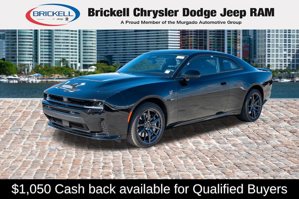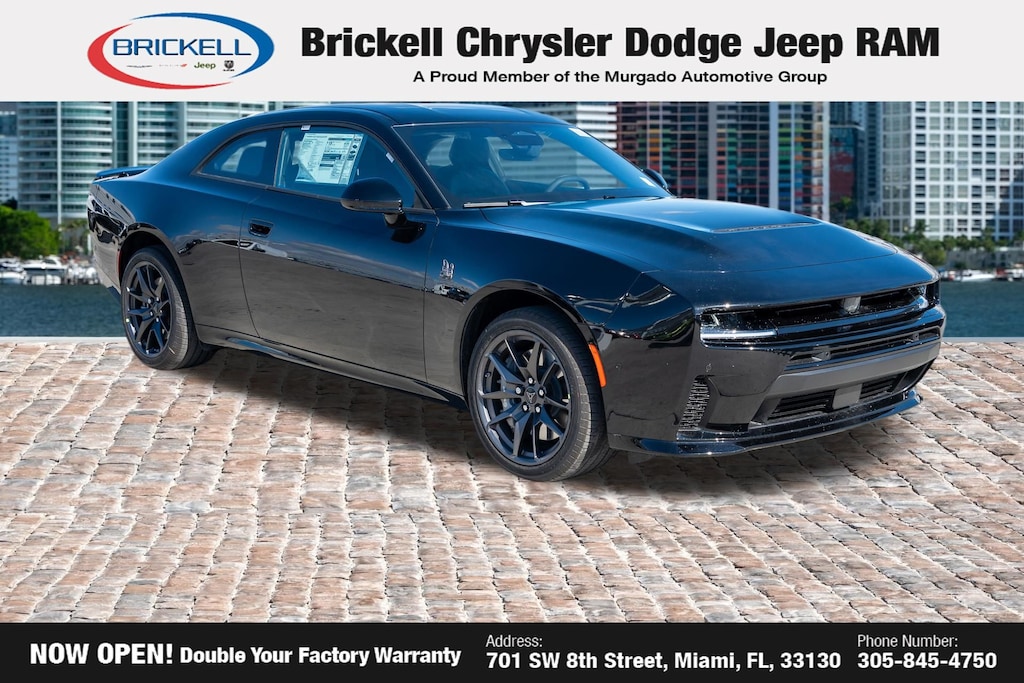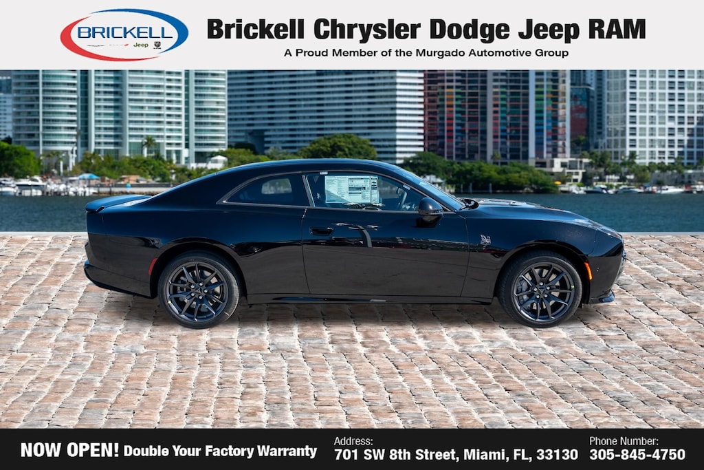 Price includes: $500 - 2026 National 2026 First Responder Bonus Cash . Exp. 01/04/2027 $550 - 2026 National Burning Gas Conquest Bonus Cash. Exp. 04/30/2026 Discover Your Next Vehicle at Brickell Chrysler Dodge Jeep Ram Welcome to Brickell CDJR, where we go beyond selling cars. We double the factory powertrain warranty, giving you added peace of mind. Our dealership offers one of the largest new car inventories in the region, ensuring you find the right vehicle Prices displayed do not included our Perma-plate. Our state-of-the-art service department is the largest in the country and is open seven days a week from 7 AM to 9 PM. Visit us at 701 SW 8th St, Miami, FL 33130, or call 305-777-2800 to learn more and schedule a test drive. The displayed price includes an incentive for financing with Brickell CDJR Finance Company. Outside financing and bank drafts are not accepted. All pre-owned vehicle exports are subject to an export fee. Prices apply only to customers who live, work, or worship in Broward, Miami-Dade, Palm Beach, Monroe, Collier, Hendry, Lee, Glades, Martin, St. Lucie, Okeechobee, Manatee, Hillsborough, Osceola, or Orange County. Customers outside these counties will pay an additional $ Taxes, title, registration, and dealer fees apply. Factory MSRP: $59,480 Diamond Black Crystal Pearlcoat 2026 Dodge Charger R/T Scat Pack AWD 8-Speed Automatic HO AWD, Black Artificial Leather.