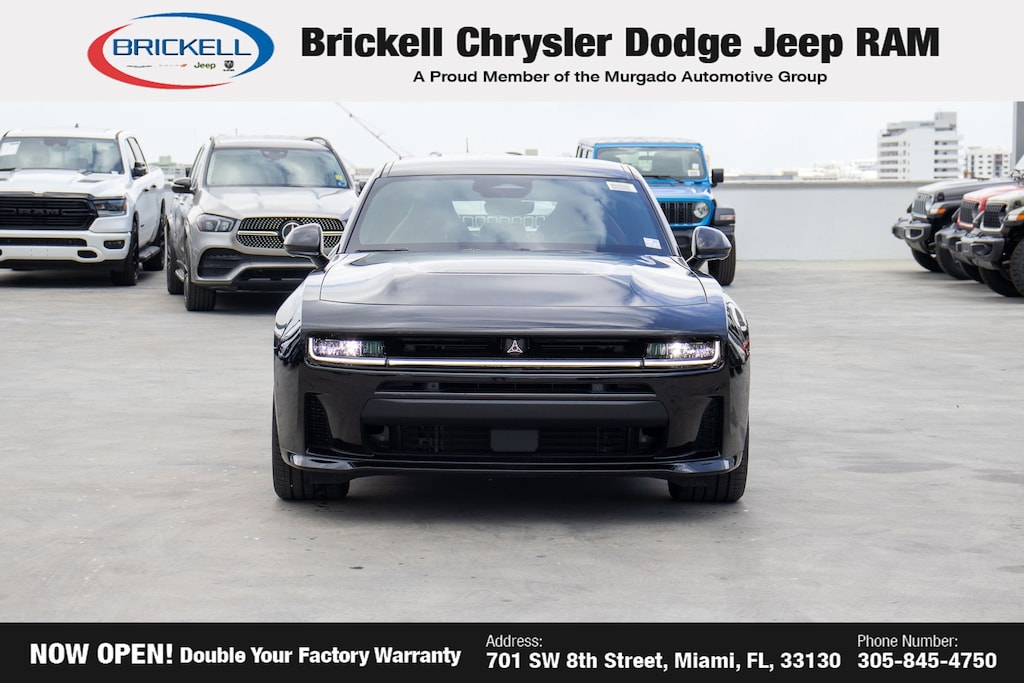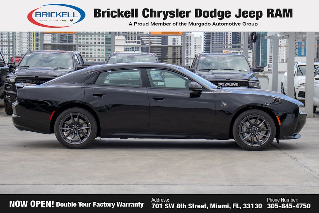 Price includes: $500 - 2026 National 2026 First Responder Bonus Cash . Exp. 01/04/2027 $550 - 2026 National Burning Gas Conquest Bonus Cash. Exp. 03/31/2026 Discover Your Next Vehicle at Brickell Chrysler Dodge Jeep Ram Welcome to Brickell CDJR, where we go beyond selling cars. We double the factory powertrain warranty, giving you added peace of mind. Our dealership offers one of the largest new car inventories in the region, ensuring you find the right vehicle Prices displayed do not included our Perma-plate. Our state-of-the-art service department is the largest in the country and is open seven days a week from 7 AM to 9 PM. Visit us at 701 SW 8th St, Miami, FL 33130, or call 305-777-2800 to learn more and schedule a test drive. The displayed price includes an incentive for financing with Brickell CDJR Finance Company. Outside financing and bank drafts are not accepted. All pre-owned vehicle exports are subject to an export fee. Prices apply only to customers who live, work, or worship in Broward, Miami-Dade, Palm Beach, Monroe, Collier, Hendry, Lee, Glades, Martin, St. Lucie, Okeechobee, Manatee, Hillsborough, Osceola, or Orange County. Customers outside these counties will pay an additional $ Taxes, title, registration, and dealer fees apply. Factory MSRP: $72,255 Diamond Black Crystal Pearlcoat 2026 Dodge Charger R/T Scat Pack AWD 8-Speed Automatic HO AWD, Black Leather.