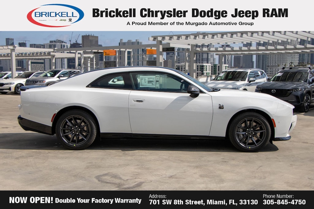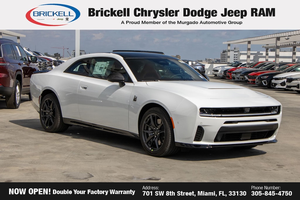 Price includes: $500 - 2026 National 2026 First Responder Bonus Cash . Exp. 01/04/2027 $550 - 2026 National Burning Gas Conquest Bonus Cash. Exp. 03/31/2026 Discover Your Next Vehicle at Brickell Chrysler Dodge Jeep Ram Welcome to Brickell CDJR, where we go beyond selling cars. We double the factory powertrain warranty, giving you added peace of mind. Our dealership offers one of the largest new car inventories in the region, ensuring you find the right vehicle Prices displayed do not included our Perma-plate. Our state-of-the-art service department is the largest in the country and is open seven days a week from 7 AM to 9 PM. Visit us at 701 SW 8th St, Miami, FL 33130, or call 305-777-2800 to learn more and schedule a test drive. The displayed price includes an incentive for financing with Brickell CDJR Finance Company. Outside financing and bank drafts are not accepted. All pre-owned vehicle exports are subject to an export fee. Prices apply only to customers who live, work, or worship in Broward, Miami-Dade, Palm Beach, Monroe, Collier, Hendry, Lee, Glades, Martin, St. Lucie, Okeechobee, Manatee, Hillsborough, Osceola, or Orange County. Customers outside these counties will pay an additional $ Taxes, title, registration, and dealer fees apply. Factory MSRP: $70,950 Bright White Clearcoat 2026 Dodge Charger R/T Scat Pack AWD 8-Speed Automatic HO AWD, Black Artificial Leather.
