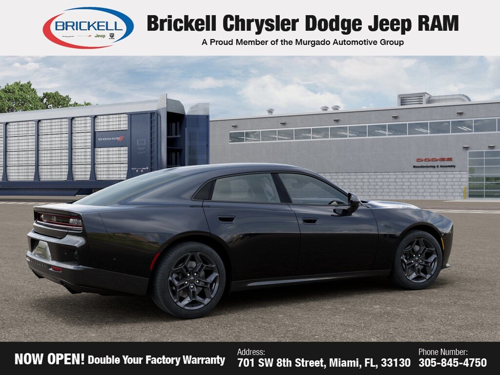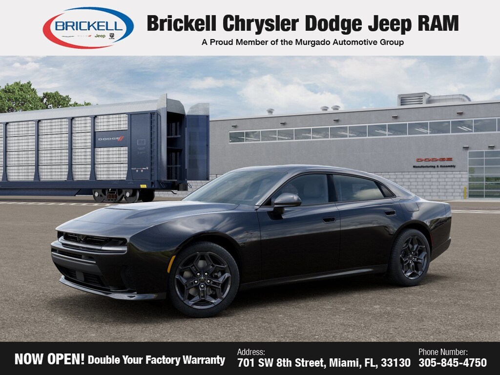 Discover Your Next Vehicle at Brickell Chrysler Dodge Jeep Ram Welcome to Brickell CDJR, where we go beyond selling cars. We double the factory powertrain warranty, giving you added peace of mind. Our dealership offers one of the largest new car inventories in the region, ensuring you find the right vehicle Prices displayed do not included our Perma-plate. Our state-of-the-art service department is the largest in the country and is open seven days a week from 7 AM to 9 PM. Visit us at 701 SW 8th St, Miami, FL 33130, or call 305-777-2800 to learn more and schedule a test drive. The displayed price includes an incentive for financing with Brickell CDJR Finance Company. Outside financing and bank drafts are not accepted. All pre-owned vehicle exports are subject to an export fee. Prices apply only to customers who live, work, or worship in Broward, Miami-Dade, Palm Beach, Monroe, Collier, Hendry, Lee, Glades, Martin, St. Lucie, Okeechobee, Manatee, Hillsborough, Osceola, or Orange County. Customers outside these counties will pay an additional $ Taxes, title, registration, and dealer fees apply. Factory MSRP: $55,285 Diamond Black Crystal Pearlcoat 2026 Dodge Charger R/T AWD 8-Speed Automatic 3.0L I6 Turbocharged DOHC 24V LEV3-ULEV70 420hp AWD, Black Cloth.