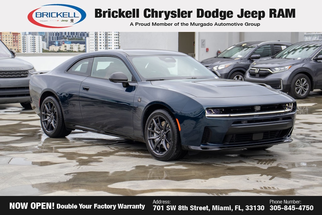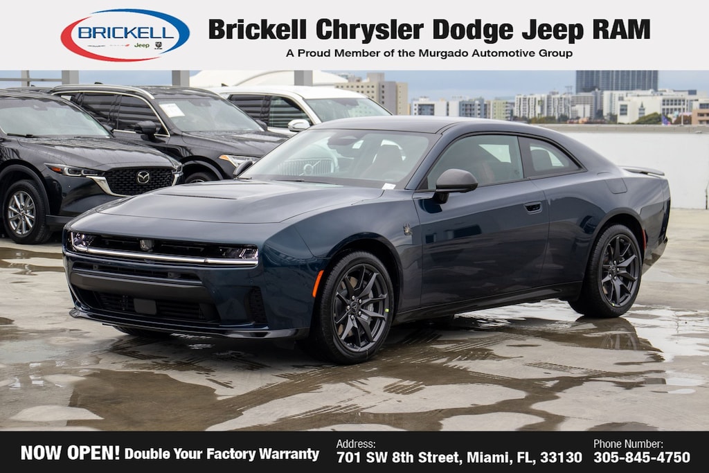 Discover Your Next Vehicle at Brickell Chrysler Dodge Jeep Ram Welcome to Brickell CDJR, where we go beyond selling cars. We double the factory powertrain warranty, giving you added peace of mind. Our dealership offers one of the largest new car inventories in the region, ensuring you find the right vehicle Prices displayed do not included our Perma-plate. Our state-of-the-art service department is the largest in the country and is open seven days a week from 7 AM to 9 PM. Visit us at 701 SW 8th St, Miami, FL 33130, or call 305-777-2800 to learn more and schedule a test drive. The displayed price includes an incentive for financing with Brickell CDJR Finance Company. Outside financing and bank drafts are not accepted. All pre-owned vehicle exports are subject to an export fee. Prices apply only to customers who live, work, or worship in Broward, Miami-Dade, Palm Beach, Monroe, Collier, Hendry, Lee, Glades, Martin, St. Lucie, Okeechobee, Manatee, Hillsborough, Osceola, or Orange County. Customers outside these counties will pay an additional $ Taxes, title, registration, and dealer fees apply. Factory MSRP: $70,950 After Dark 2026 Dodge Charger R/T Scat Pack AWD 8-Speed Automatic HO AWD, Red Artificial Leather.