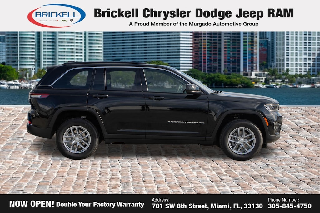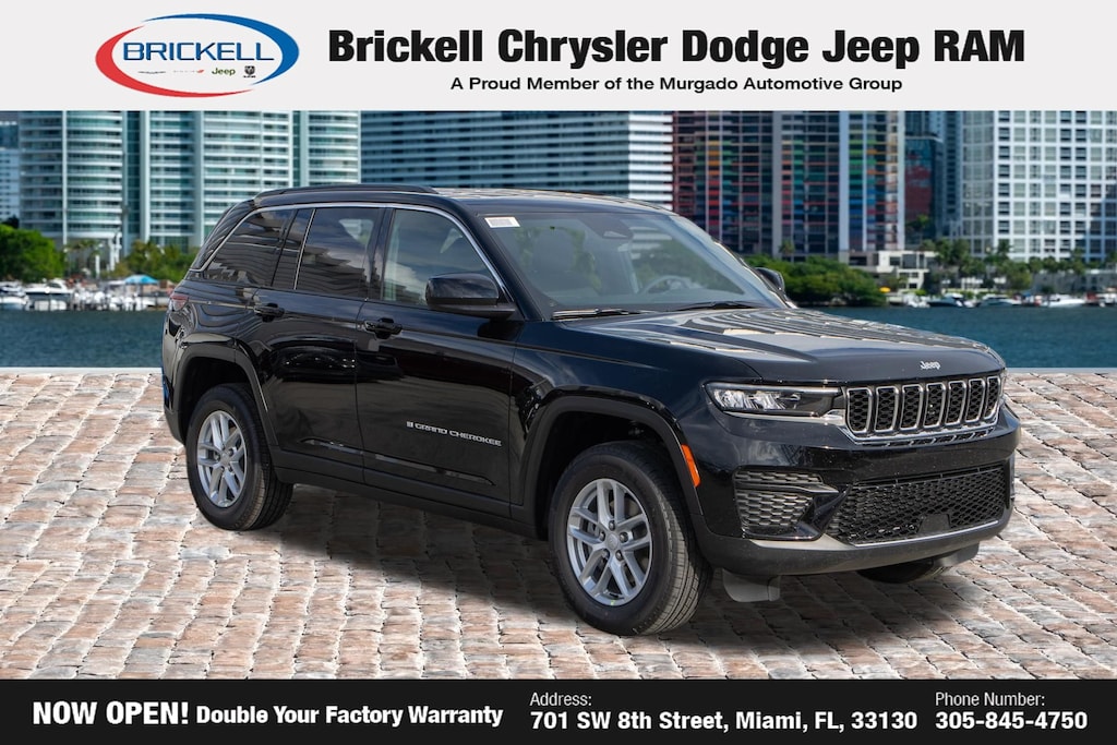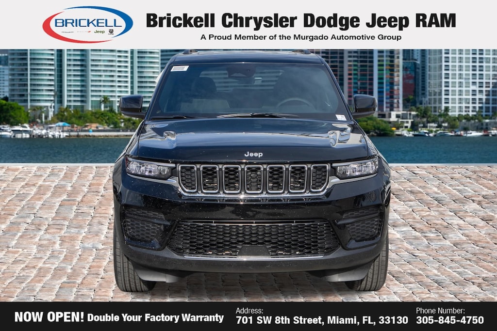 Price includes: $2000 - 2025 National Bonus Cash . Exp. 04/30/2026 $2250 - 2025 National Retail Bonus Cash . Exp. 04/30/2026 $500 - 2025 National 2025 First Responder Bonus Cash. Exp. 01/04/2027 $500 - 2025 Southeast BC Retail Bonus Cash . Exp. 04/30/2026 Discover Your Next Vehicle at Brickell Chrysler Dodge Jeep Ram Welcome to Brickell CDJR, where we go beyond selling cars. We double the factory powertrain warranty, giving you added peace of mind. Our dealership offers one of the largest new car inventories in the region, ensuring you find the right vehicle Prices displayed do not included our Perma-plate. Our state-of-the-art service department is the largest in the country and is open seven days a week from 7 AM to 9 PM. Visit us at 701 SW 8th St, Miami, FL 33130, or call 305-777-2800 to learn more and schedule a test drive. The displayed price includes an incentive for financing with Brickell CDJR Finance Company. Outside financing and bank drafts are not accepted. All pre-owned vehicle exports are subject to an export fee. Prices apply only to customers who live, work, or worship in Broward, Miami-Dade, Palm Beach, Monroe, Collier, Hendry, Lee, Glades, Martin, St. Lucie, Okeechobee, Manatee, Hillsborough, Osceola, or Orange County. Customers outside these counties will pay an additional $ Taxes, title, registration, and dealer fees apply. Factory MSRP: $42,375 Diamond Black Crystal Pearlcoat 2025 Jeep Grand Cherokee Laredo 4WD 8-Speed Automatic 3.6L V6 24V VVT 4WD.