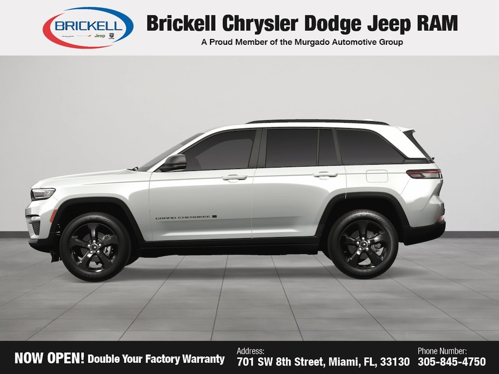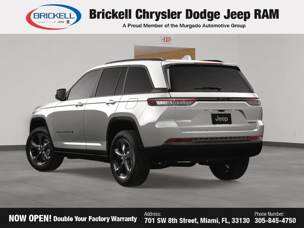 Price includes: $1000 - 2025 National Grand Cherokee Loyalty Retail Bonus Cash . Exp. 11/03/2025 $1750 - 2025 National Retail Bonus Cash . Exp. 11/03/2025 $500 - 2025 National 2025 First Responder Bonus Cash. Exp. 01/05/2026 $500 - 2025 National Jeep Monopoly Money Bonus Cash . Exp. 11/03/2025 $750 - 2025 South BC Retail Bonus Cash . Exp. 11/03/2025 Discover Your Next Vehicle at Brickell Chrysler Dodge Jeep Ram Welcome to Brickell CDJR, where we go beyond selling cars. We double the factory powertrain warranty, giving you added peace of mind. Our dealership offers one of the largest new car inventories in the region, ensuring you find the right vehicle Prices displayed do not included our Perma-plate. Our state-of-the-art service department is the largest in the country and is open seven days a week from 7 AM to 9 PM. Visit us at 701 SW 8th St, Miami, FL 33130, or call 305-777-2800 to learn more and schedule a test drive. The displayed price includes an incentive for financing with Brickell CDJR Finance Company. Outside financing and bank drafts are not accepted. All pre-owned vehicle exports are subject to an export fee. Prices apply only to customers who live, work, or worship in Broward, Miami-Dade, Palm Beach, Monroe, Collier, Hendry, Lee, Glades, Martin, St. Lucie, Okeechobee, Manatee, Hillsborough, Osceola, or Orange County. Customers outside these counties will pay an additional $ Taxes, title, registration, and dealer fees apply. Factory MSRP: $47,625 Bright White Clearcoat 2025 Jeep Grand Cherokee Limited RWD 8-Speed Automatic 3.6L V6 24V VVT