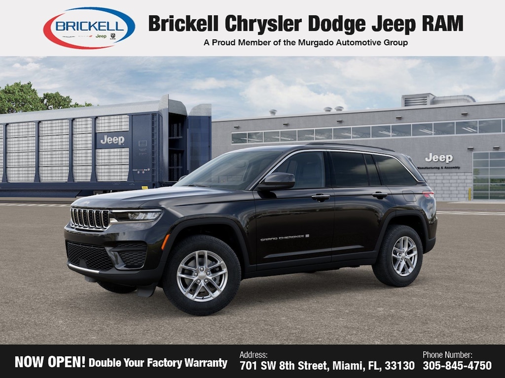 Discover Your Next Vehicle at Brickell Chrysler Dodge Jeep Ram Welcome to Brickell CDJR, where we go beyond selling cars. We double the factory powertrain warranty, giving you added peace of mind. Our dealership offers one of the largest new car inventories in the region, ensuring you find the right vehicle Prices displayed do not included our Perma-plate. Our state-of-the-art service department is the largest in the country and is open seven days a week from 7 AM to 9 PM. Visit us at 701 SW 8th St, Miami, FL 33130, or call 305-777-2800 to learn more and schedule a test drive. The displayed price includes an incentive for financing with Brickell CDJR Finance Company. Outside financing and bank drafts are not accepted. All pre-owned vehicle exports are subject to an export fee. Prices apply only to customers who live, work, or worship in Broward, Miami-Dade, Palm Beach, Monroe, Collier, Hendry, Lee, Glades, Martin, St. Lucie, Okeechobee, Manatee, Hillsborough, Osceola, or Orange County. Customers outside these counties will pay an additional $ Taxes, title, registration, and dealer fees apply. Factory MSRP: $42,170 Diamond Black Crystal Pearlcoat 2025 Jeep Grand Cherokee Laredo RWD 8-Speed Automatic 3.6L V6 24V VVT