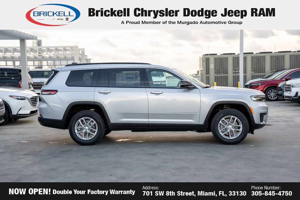 Price includes: $2500 - 2025 National Retail Bonus Cash . Exp. 03/02/2026 $500 - 2025 National 2025 First Responder Bonus Cash. Exp. 01/04/2027 $500 - 2025 National 2025 Military Bonus Cash. Exp. 01/04/2027 $500 - 2025 Southeast BC Retail Bonus Cash . Exp. 03/02/2026 Discover Your Next Vehicle at Brickell Chrysler Dodge Jeep Ram Welcome to Brickell CDJR, where we go beyond selling cars. We double the factory powertrain warranty, giving you added peace of mind. Our dealership offers one of the largest new car inventories in the region, ensuring you find the right vehicle Prices displayed do not included our Perma-plate. Our state-of-the-art service department is the largest in the country and is open seven days a week from 7 AM to 9 PM. Visit us at 701 SW 8th St, Miami, FL 33130, or call 305-777-2800 to learn more and schedule a test drive. The displayed price includes an incentive for financing with Brickell CDJR Finance Company. Outside financing and bank drafts are not accepted. All pre-owned vehicle exports are subject to an export fee. Prices apply only to customers who live, work, or worship in Broward, Miami-Dade, Palm Beach, Monroe, Collier, Hendry, Lee, Glades, Martin, St. Lucie, Okeechobee, Manatee, Hillsborough, Osceola, or Orange County. Customers outside these counties will pay an additional $ Taxes, title, registration, and dealer fees apply. Factory MSRP: $42,125 Silver Zynith 2025 Jeep Grand Cherokee L Laredo RWD 8-Speed Automatic 3.6L V6 24V VVT