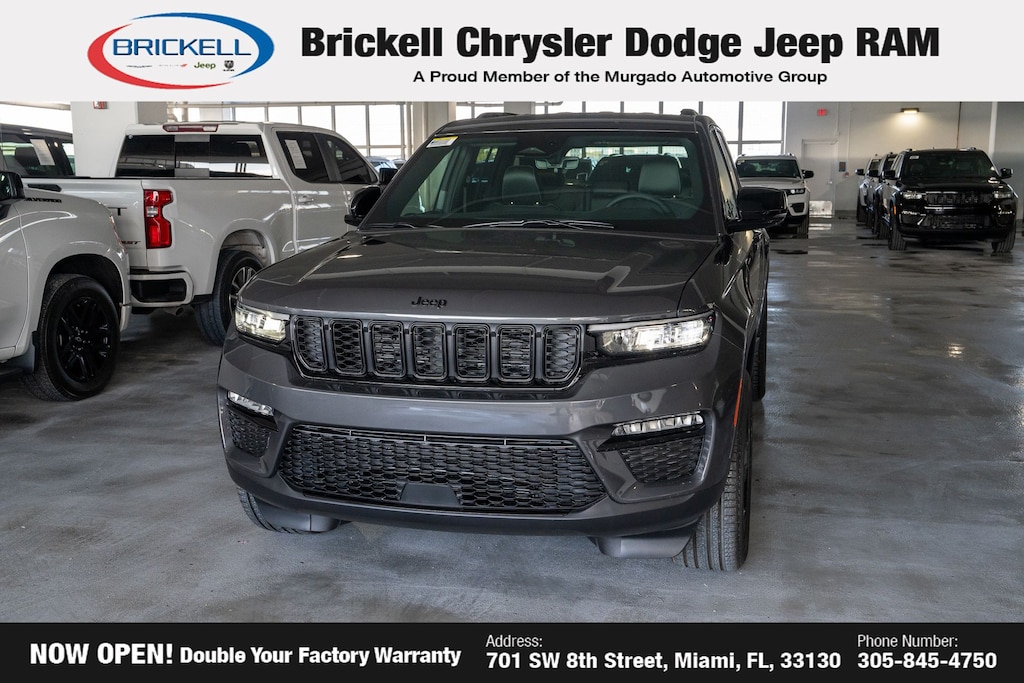 Price includes: $1000 - 2025 National Grand Cherokee Loyalty Retail Bonus Cash . Exp. 11/03/2025 $1750 - 2025 National Retail Bonus Cash . Exp. 11/03/2025 $500 - 2025 National 2025 First Responder Bonus Cash. Exp. 01/05/2026 $500 - 2025 National Jeep Monopoly Money Bonus Cash . Exp. 11/03/2025 $750 - 2025 South BC Retail Bonus Cash . Exp. 11/03/2025 Discover Your Next Vehicle at Brickell Chrysler Dodge Jeep Ram Welcome to Brickell CDJR, where we go beyond selling cars. We double the factory powertrain warranty, giving you added peace of mind. Our dealership offers one of the largest new car inventories in the region, ensuring you find the right vehicle Prices displayed do not included our Perma-plate. Our state-of-the-art service department is the largest in the country and is open seven days a week from 7 AM to 9 PM. Visit us at 701 SW 8th St, Miami, FL 33130, or call 305-777-2800 to learn more and schedule a test drive. The displayed price includes an incentive for financing with Brickell CDJR Finance Company. Outside financing and bank drafts are not accepted. All pre-owned vehicle exports are subject to an export fee. Prices apply only to customers who live, work, or worship in Broward, Miami-Dade, Palm Beach, Monroe, Collier, Hendry, Lee, Glades, Martin, St. Lucie, Okeechobee, Manatee, Hillsborough, Osceola, or Orange County. Customers outside these counties will pay an additional $ Taxes, title, registration, and dealer fees apply. Factory MSRP: $47,920 Diamond Black Crystal Pearlcoat 2025 Jeep Grand Cherokee Limited RWD 8-Speed Automatic 3.6L V6 24V VVT