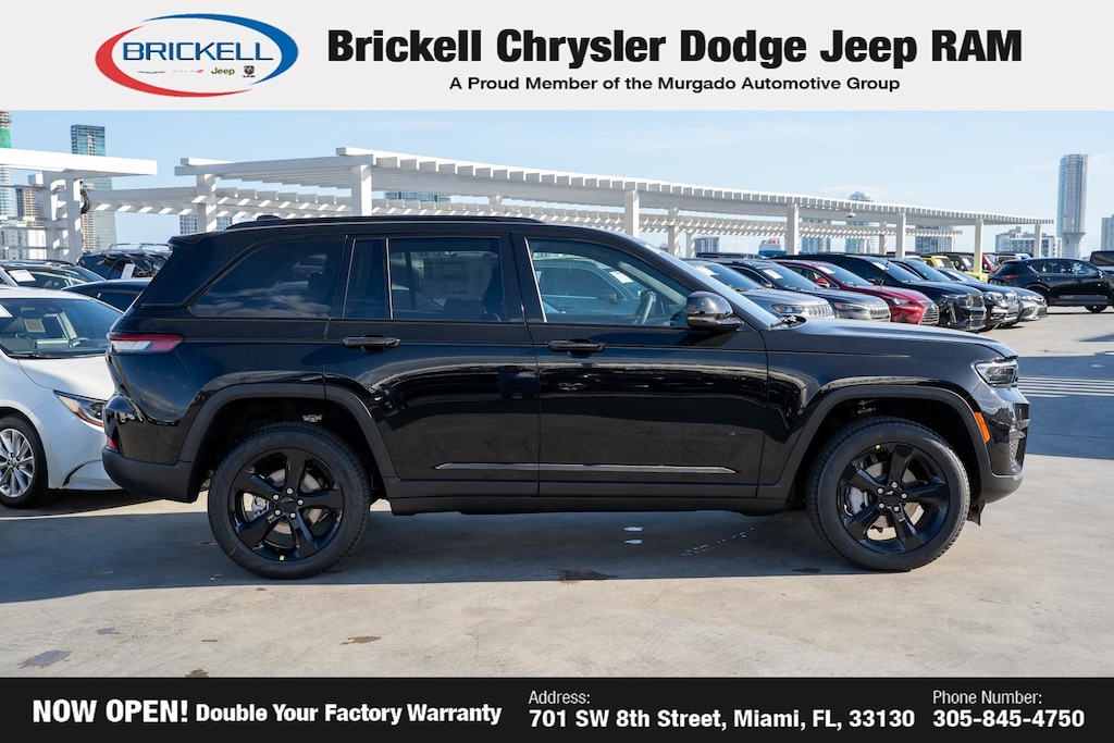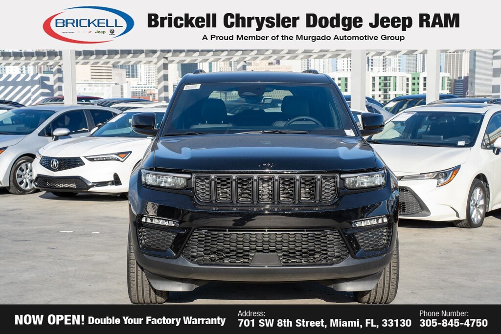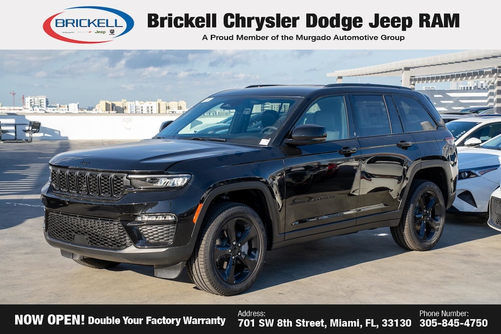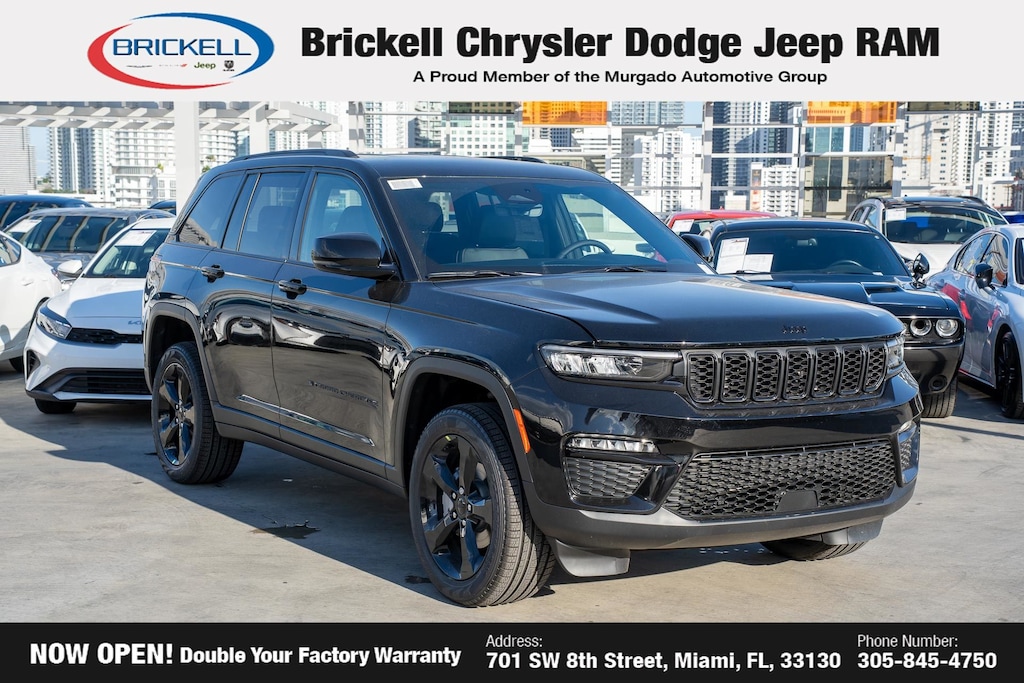 Price includes: $1250 - 2025 South BC Retail Bonus Cash . Exp. 01/05/2026 $1500 - 2025 National Stellantis Loyalty Retail Bonus Cash . Exp. 01/05/2026 $2250 - 2025 National Retail Bonus Cash . Exp. 01/05/2026 $500 - 2025 National 2025 First Responder Bonus Cash. Exp. 01/05/2026 $500 - 2025 National 2025 Military Bonus Cash. Exp. 01/05/2026 Discover Your Next Vehicle at Brickell Chrysler Dodge Jeep Ram Welcome to Brickell CDJR, where we go beyond selling cars. We double the factory powertrain warranty, giving you added peace of mind. Our dealership offers one of the largest new car inventories in the region, ensuring you find the right vehicle Prices displayed do not included our Perma-plate. Our state-of-the-art service department is the largest in the country and is open seven days a week from 7 AM to 9 PM. Visit us at 701 SW 8th St, Miami, FL 33130, or call 305-777-2800 to learn more and schedule a test drive. The displayed price includes an incentive for financing with Brickell CDJR Finance Company. Outside financing and bank drafts are not accepted. All pre-owned vehicle exports are subject to an export fee. Prices apply only to customers who live, work, or worship in Broward, Miami-Dade, Palm Beach, Monroe, Collier, Hendry, Lee, Glades, Martin, St. Lucie, Okeechobee, Manatee, Hillsborough, Osceola, or Orange County. Customers outside these counties will pay an additional $ Taxes, title, registration, and dealer fees apply. Factory MSRP: $50,220 Diamond Black Crystal Pearlcoat 2025 Jeep Grand Cherokee Limited 4WD 8-Speed Automatic 3.6L V6 24V VVT 4WD.