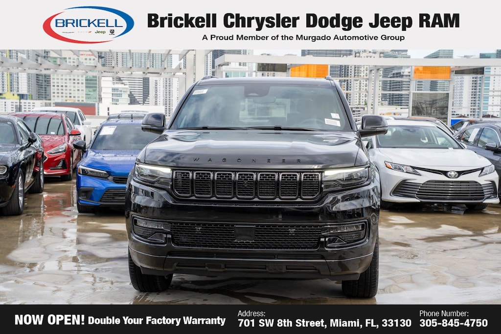Price includes: $500 - 2025 National 2025 First Responder Bonus Cash. Exp. 01/05/2026 Discover Your Next Vehicle at Brickell Chrysler Dodge Jeep Ram Welcome to Brickell CDJR, where we go beyond selling cars. We double the factory powertrain warranty, giving you added peace of mind. Our dealership offers one of the largest new car inventories in the region, ensuring you find the right vehicle Prices displayed do not included our Perma-plate. Our state-of-the-art service department is the largest in the country and is open seven days a week from 7 AM to 9 PM. Visit us at 701 SW 8th St, Miami, FL 33130, or call 305-777-2800 to learn more and schedule a test drive. The displayed price includes an incentive for financing with Brickell CDJR Finance Company. Outside financing and bank drafts are not accepted. All pre-owned vehicle exports are subject to an export fee. Prices apply only to customers who live, work, or worship in Broward, Miami-Dade, Palm Beach, Monroe, Collier, Hendry, Lee, Glades, Martin, St. Lucie, Okeechobee, Manatee, Hillsborough, Osceola, or Orange County. Customers outside these counties will pay an additional $ Taxes, title, registration, and dealer fees apply. Factory MSRP: $80,770 Diamond Black Crystal Pearlcoat 2025 Jeep Wagoneer Series II 4WD 8-Speed Automatic 3.0L I6