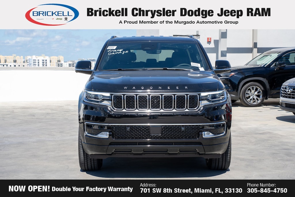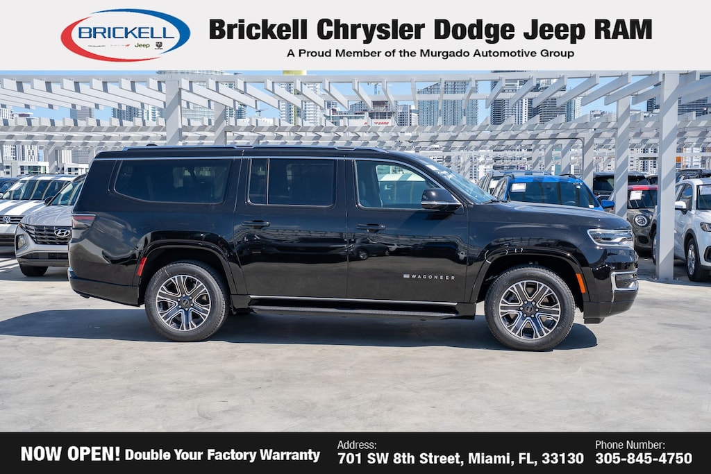 Price includes: $500 - 2025 National 2025 First Responder Bonus Cash. Exp. 01/05/2026 Discover Your Next Vehicle at Brickell Chrysler Dodge Jeep Ram Welcome to Brickell CDJR, where we go beyond selling cars. We double the factory powertrain warranty, giving you added peace of mind. Our dealership offers one of the largest new car inventories in the region, ensuring you find the right vehicle Prices displayed do not included our Perma-plate. Our state-of-the-art service department is the largest in the country and is open seven days a week from 7 AM to 9 PM. Visit us at 701 SW 8th St, Miami, FL 33130, or call 305-777-2800 to learn more and schedule a test drive. The displayed price includes an incentive for financing with Brickell CDJR Finance Company. Outside financing and bank drafts are not accepted. All pre-owned vehicle exports are subject to an export fee. Prices apply only to customers who live, work, or worship in Broward, Miami-Dade, Palm Beach, Monroe, Collier, Hendry, Lee, Glades, Martin, St. Lucie, Okeechobee, Manatee, Hillsborough, Osceola, or Orange County. Customers outside these counties will pay an additional $ Taxes, title, registration, and dealer fees apply. Factory MSRP: $72,680 Diamond Black Crystal Pearlcoat 2025 Jeep Wagoneer L 4WD 8-Speed Automatic 3.0L I6