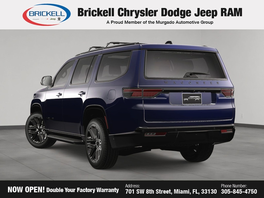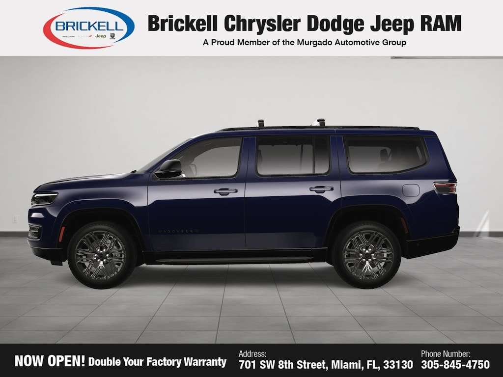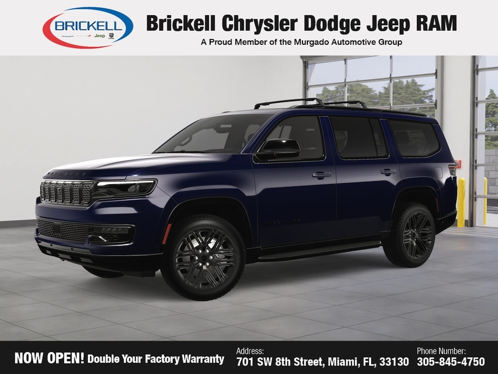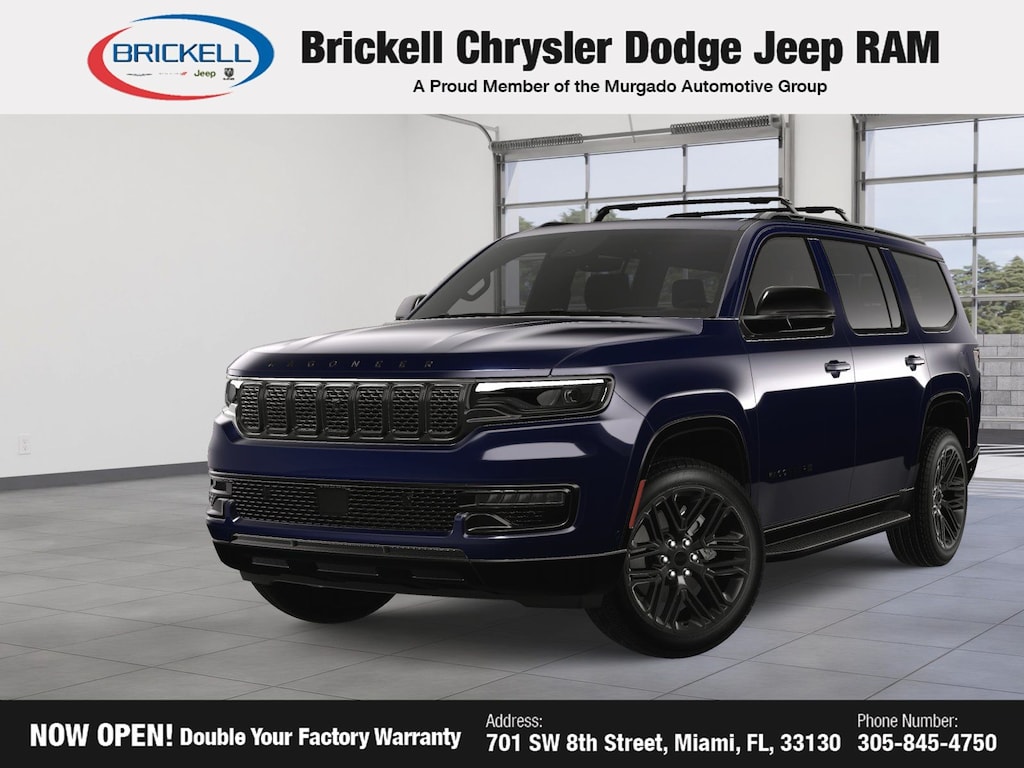 Price includes: $500 - 2025 National 2025 First Responder Bonus Cash. Exp. 01/05/2026 Discover Your Next Vehicle at Brickell Chrysler Dodge Jeep Ram Welcome to Brickell CDJR, where we go beyond selling cars. We double the factory powertrain warranty, giving you added peace of mind. Our dealership offers one of the largest new car inventories in the region, ensuring you find the right vehicle Prices displayed do not included our Perma-plate. Our state-of-the-art service department is the largest in the country and is open seven days a week from 7 AM to 9 PM. Visit us at 701 SW 8th St, Miami, FL 33130, or call 305-777-2800 to learn more and schedule a test drive. The displayed price includes an incentive for financing with Brickell CDJR Finance Company. Outside financing and bank drafts are not accepted. All pre-owned vehicle exports are subject to an export fee. Prices apply only to customers who live, work, or worship in Broward, Miami-Dade, Palm Beach, Monroe, Collier, Hendry, Lee, Glades, Martin, St. Lucie, Okeechobee, Manatee, Hillsborough, Osceola, or Orange County. Customers outside these counties will pay an additional $ Taxes, title, registration, and dealer fees apply. Factory MSRP: $80,770 Midnight Sky 2025 Jeep Wagoneer Series II 4WD 8-Speed Automatic 3.0L I6