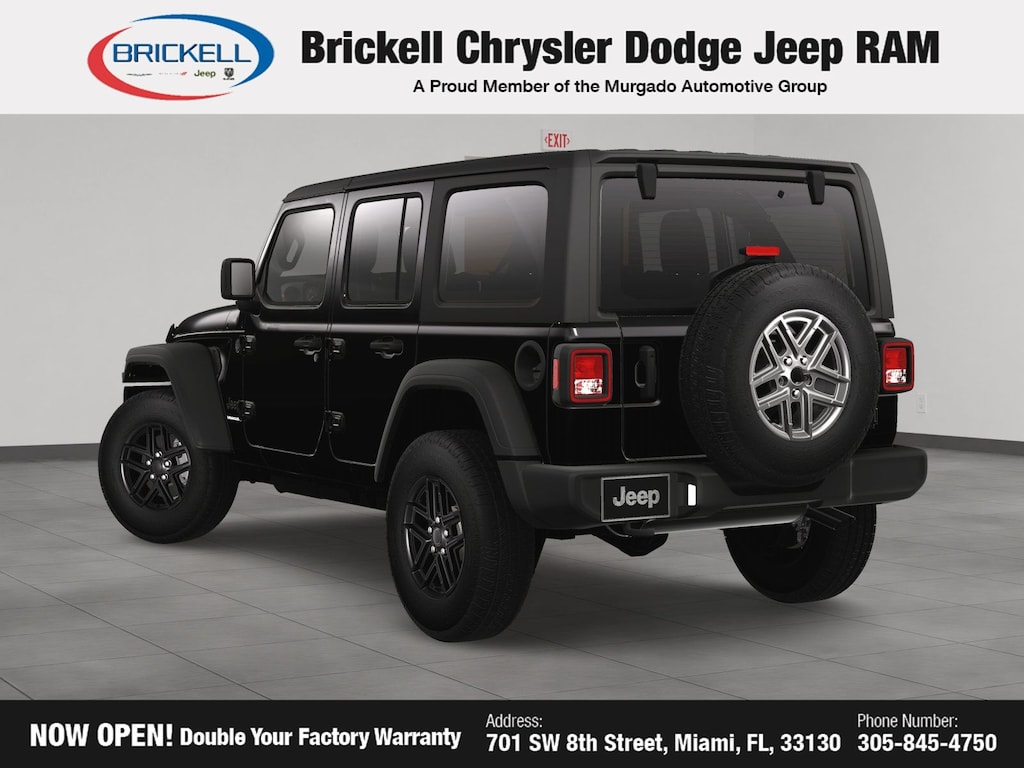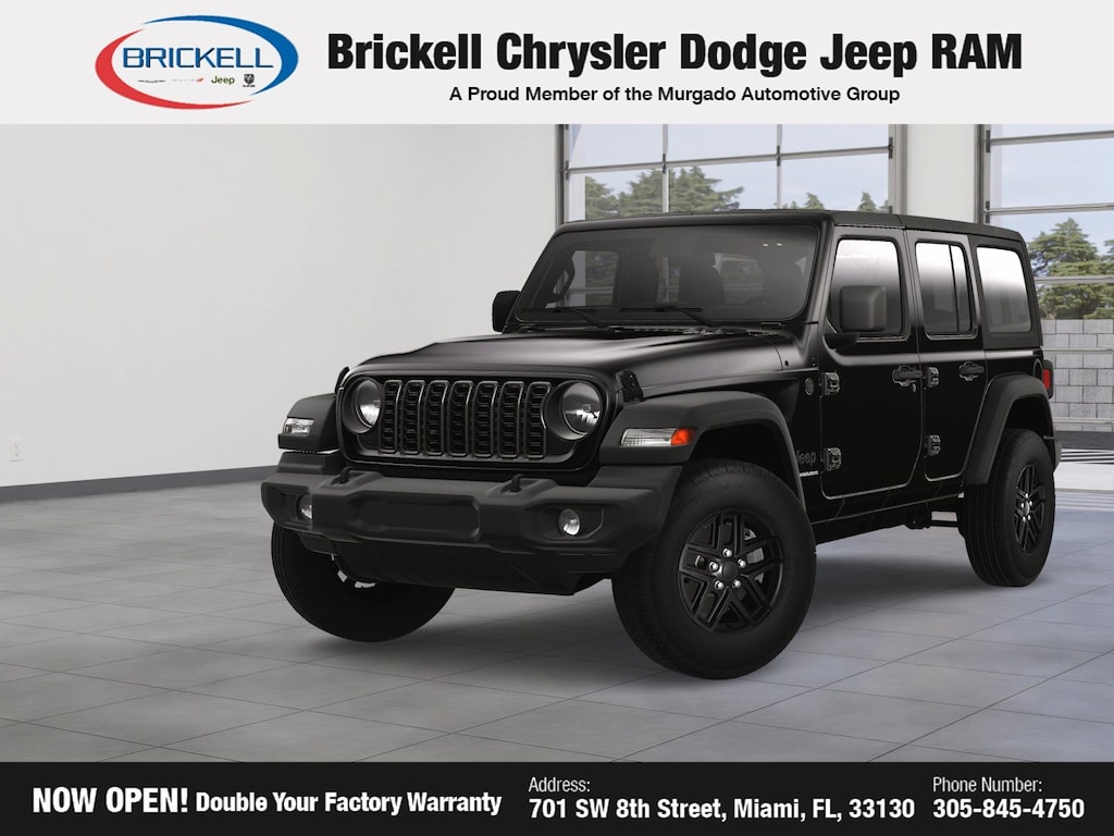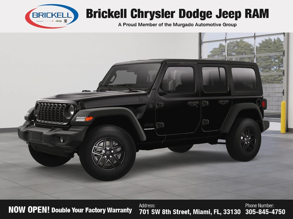 Price includes: $500 - 2025 National 2025 First Responder Bonus Cash. Exp. 01/05/2026 $500 - 2025 National 2025 Military Bonus Cash. Exp. 01/05/2026 Discover Your Next Vehicle at Brickell Chrysler Dodge Jeep Ram Welcome to Brickell CDJR, where we go beyond selling cars. We double the factory powertrain warranty, giving you added peace of mind. Our dealership offers one of the largest new car inventories in the region, ensuring you find the right vehicle Prices displayed do not included our Perma-plate. Our state-of-the-art service department is the largest in the country and is open seven days a week from 7 AM to 9 PM. Visit us at 701 SW 8th St, Miami, FL 33130, or call 305-777-2800 to learn more and schedule a test drive. The displayed price includes an incentive for financing with Brickell CDJR Finance Company. Outside financing and bank drafts are not accepted. All pre-owned vehicle exports are subject to an export fee. Prices apply only to customers who live, work, or worship in Broward, Miami-Dade, Palm Beach, Monroe, Collier, Hendry, Lee, Glades, Martin, St. Lucie, Okeechobee, Manatee, Hillsborough, Osceola, or Orange County. Customers outside these counties will pay an additional $ Taxes, title, registration, and dealer fees apply. Factory MSRP: $47,180 Black Clearcoat 2025 Jeep Wrangler Sport S 4WD 8-Speed Automatic 2.0L I4 DOHC