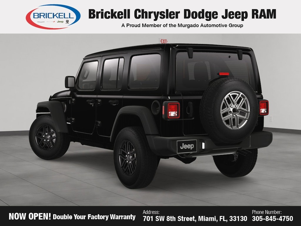 Price includes: $500 - 2025 National 2025 First Responder Bonus Cash. Exp. 01/05/2026 $500 - 2025 National 2025 Military Bonus Cash. Exp. 01/05/2026 Discover Your Next Vehicle at Brickell Chrysler Dodge Jeep Ram Welcome to Brickell CDJR, where we go beyond selling cars. We double the factory powertrain warranty, giving you added peace of mind. Our dealership offers one of the largest new car inventories in the region, ensuring you find the right vehicle Prices displayed do not included our Perma-plate. Our state-of-the-art service department is the largest in the country and is open seven days a week from 7 AM to 9 PM. Visit us at 701 SW 8th St, Miami, FL 33130, or call 305-777-2800 to learn more and schedule a test drive. The displayed price includes an incentive for financing with Brickell CDJR Finance Company. Outside financing and bank drafts are not accepted. All pre-owned vehicle exports are subject to an export fee. Prices apply only to customers who live, work, or worship in Broward, Miami-Dade, Palm Beach, Monroe, Collier, Hendry, Lee, Glades, Martin, St. Lucie, Okeechobee, Manatee, Hillsborough, Osceola, or Orange County. Customers outside these counties will pay an additional $ Taxes, title, registration, and dealer fees apply. Factory MSRP: $53,375 Black Clearcoat 2025 Jeep Wrangler Sport S 4WD 8-Speed Automatic 3.6L V6 24V VVT