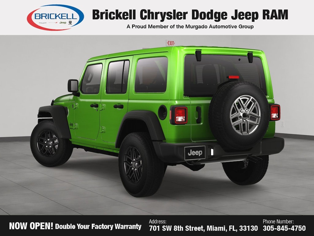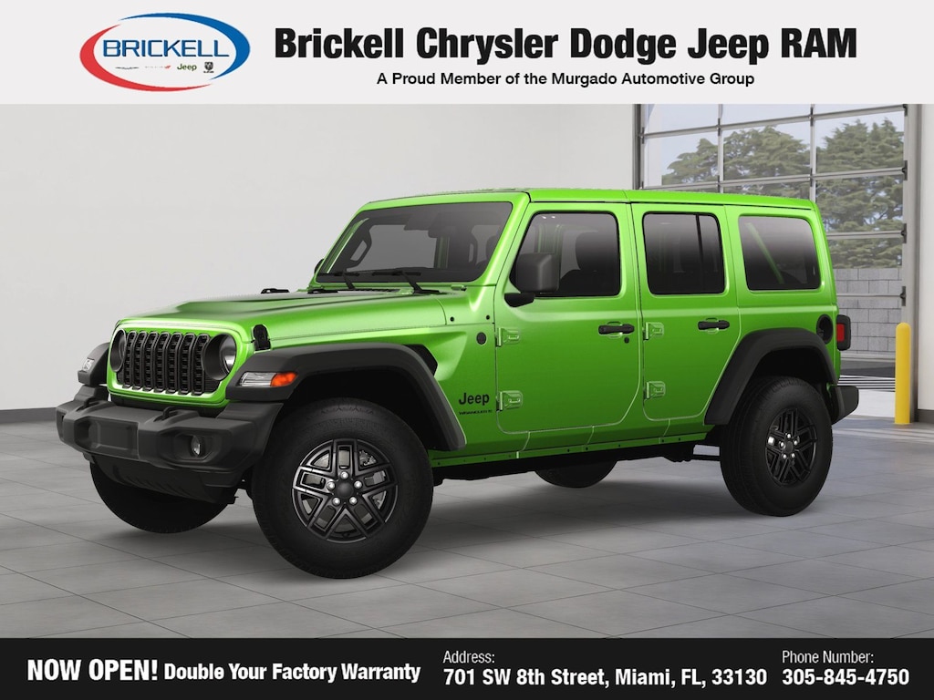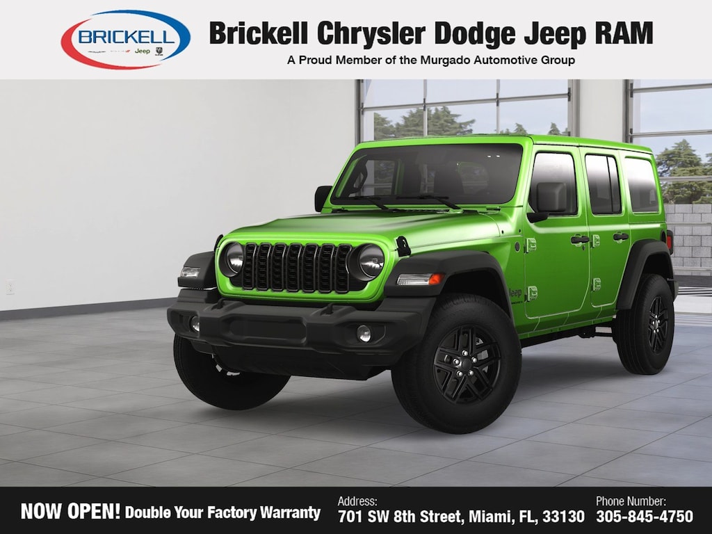 Price includes: $500 - 2025 National 2025 First Responder Bonus Cash. Exp. 01/05/2026 $500 - 2025 National 2025 Military Bonus Cash. Exp. 01/05/2026 Discover Your Next Vehicle at Brickell Chrysler Dodge Jeep Ram Welcome to Brickell CDJR, where we go beyond selling cars. We double the factory powertrain warranty, giving you added peace of mind. Our dealership offers one of the largest new car inventories in the region, ensuring you find the right vehicle Prices displayed do not included our Perma-plate. Our state-of-the-art service department is the largest in the country and is open seven days a week from 7 AM to 9 PM. Visit us at 701 SW 8th St, Miami, FL 33130, or call 305-777-2800 to learn more and schedule a test drive. The displayed price includes an incentive for financing with Brickell CDJR Finance Company. Outside financing and bank drafts are not accepted. All pre-owned vehicle exports are subject to an export fee. Prices apply only to customers who live, work, or worship in Broward, Miami-Dade, Palm Beach, Monroe, Collier, Hendry, Lee, Glades, Martin, St. Lucie, Okeechobee, Manatee, Hillsborough, Osceola, or Orange County. Customers outside these counties will pay an additional $ Taxes, title, registration, and dealer fees apply. Factory MSRP: $47,180 Mojito Clearcoat 2025 Jeep Wrangler Sport S 4WD 8-Speed Automatic 2.0L I4 DOHC