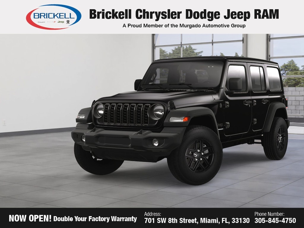 Price includes: $500 - 2025 National 2025 First Responder Bonus Cash. Exp. 01/05/2026 $500 - 2025 National 2025 Military Bonus Cash. Exp. 01/05/2026 Discover Your Next Vehicle at Brickell Chrysler Dodge Jeep Ram Welcome to Brickell CDJR, where we go beyond selling cars. We double the factory powertrain warranty, giving you added peace of mind. Our dealership offers one of the largest new car inventories in the region, ensuring you find the right vehicle Prices displayed do not included our Perma-plate. Our state-of-the-art service department is the largest in the country and is open seven days a week from 7 AM to 9 PM. Visit us at 701 SW 8th St, Miami, FL 33130, or call 305-777-2800 to learn more and schedule a test drive. The displayed price includes an incentive for financing with Brickell CDJR Finance Company. Outside financing and bank drafts are not accepted. All pre-owned vehicle exports are subject to an export fee. Prices apply only to customers who live, work, or worship in Broward, Miami-Dade, Palm Beach, Monroe, Collier, Hendry, Lee, Glades, Martin, St. Lucie, Okeechobee, Manatee, Hillsborough, Osceola, or Orange County. Customers outside these counties will pay an additional $ Taxes, title, registration, and dealer fees apply. Factory MSRP: $54,970 Black Clearcoat 2025 Jeep Wrangler Sport S 4WD 8-Speed Automatic 3.6L V6 24V VVT