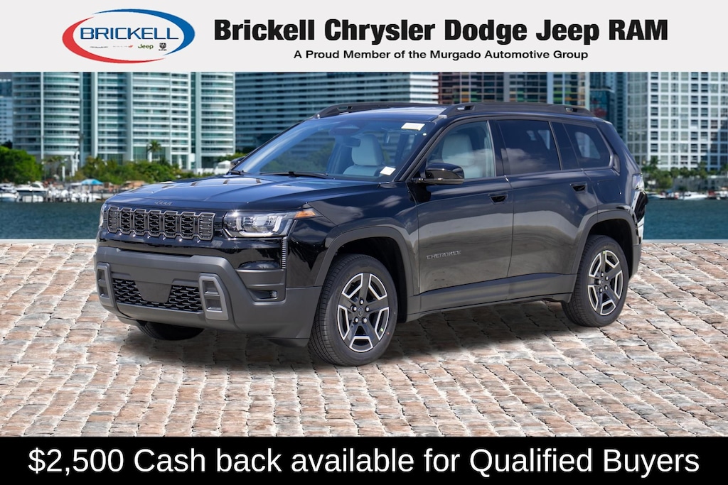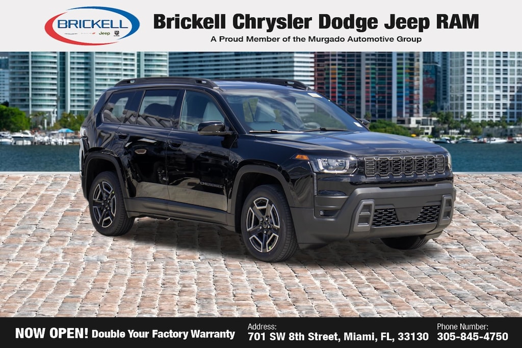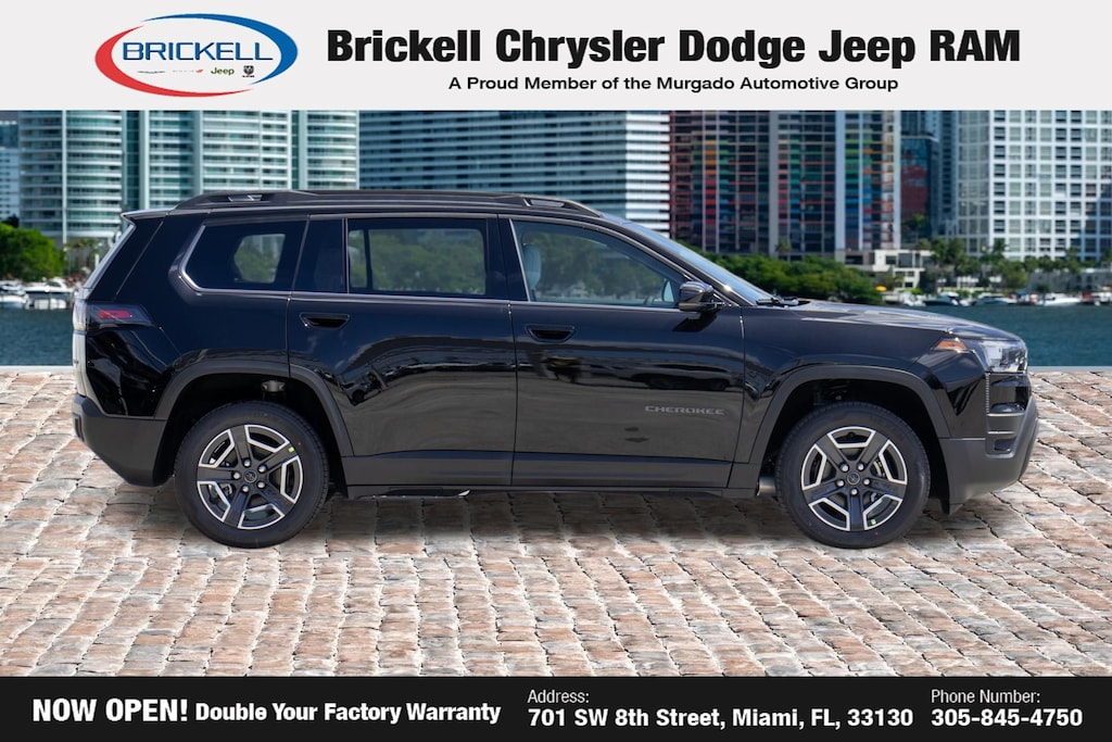Price includes: $1000 - 2026 National Retail Bonus Cash . Exp. 04/30/2026 Discover Your Next Vehicle at Brickell Chrysler Dodge Jeep Ram Welcome to Brickell CDJR, where we go beyond selling cars. We double the factory powertrain warranty, giving you added peace of mind. Our dealership offers one of the largest new car inventories in the region, ensuring you find the right vehicle Prices displayed do not included our Perma-plate. Our state-of-the-art service department is the largest in the country and is open seven days a week from 7 AM to 9 PM. Visit us at 701 SW 8th St, Miami, FL 33130, or call 305-777-2800 to learn more and schedule a test drive. The displayed price includes an incentive for financing with Brickell CDJR Finance Company. Outside financing and bank drafts are not accepted. All pre-owned vehicle exports are subject to an export fee. Prices apply only to customers who live, work, or worship in Broward, Miami-Dade, Palm Beach, Monroe, Collier, Hendry, Lee, Glades, Martin, St. Lucie, Okeechobee, Manatee, Hillsborough, Osceola, or Orange County. Customers outside these counties will pay an additional $ Taxes, title, registration, and dealer fees apply. Factory MSRP: $42,590 Diamond Black Crystal Pearlcoat 2026 Jeep Cherokee Limited 4WD CVT 1.6L I4 1.6L I4.