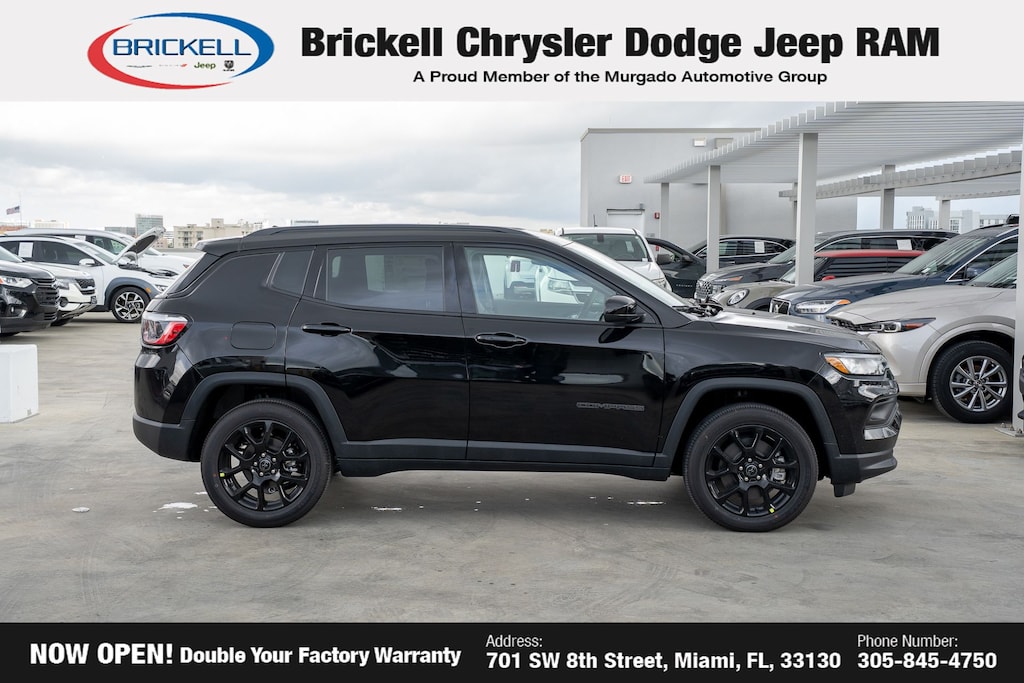 Discover Your Next Vehicle at Brickell Chrysler Dodge Jeep Ram Welcome to Brickell CDJR, where we go beyond selling cars. We double the factory powertrain warranty, giving you added peace of mind. Our dealership offers one of the largest new car inventories in the region, ensuring you find the right vehicle Prices displayed do not included our Perma-plate. Our state-of-the-art service department is the largest in the country and is open seven days a week from 7 AM to 9 PM. Visit us at 701 SW 8th St, Miami, FL 33130, or call 305-777-2800 to learn more and schedule a test drive. The displayed price includes an incentive for financing with Brickell CDJR Finance Company. Outside financing and bank drafts are not accepted. All pre-owned vehicle exports are subject to an export fee. Prices apply only to customers who live, work, or worship in Broward, Miami-Dade, Palm Beach, Monroe, Collier, Hendry, Lee, Glades, Martin, St. Lucie, Okeechobee, Manatee, Hillsborough, Osceola, or Orange County. Customers outside these counties will pay an additional $ Taxes, title, registration, and dealer fees apply. Factory MSRP: $33,410 Pxj 2026 Jeep Compass Latitude 4WD 8-Speed Automatic with Overdrive I4 4WD.