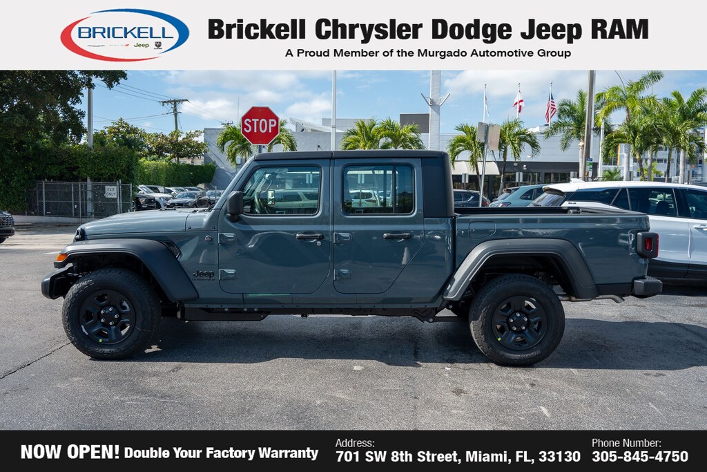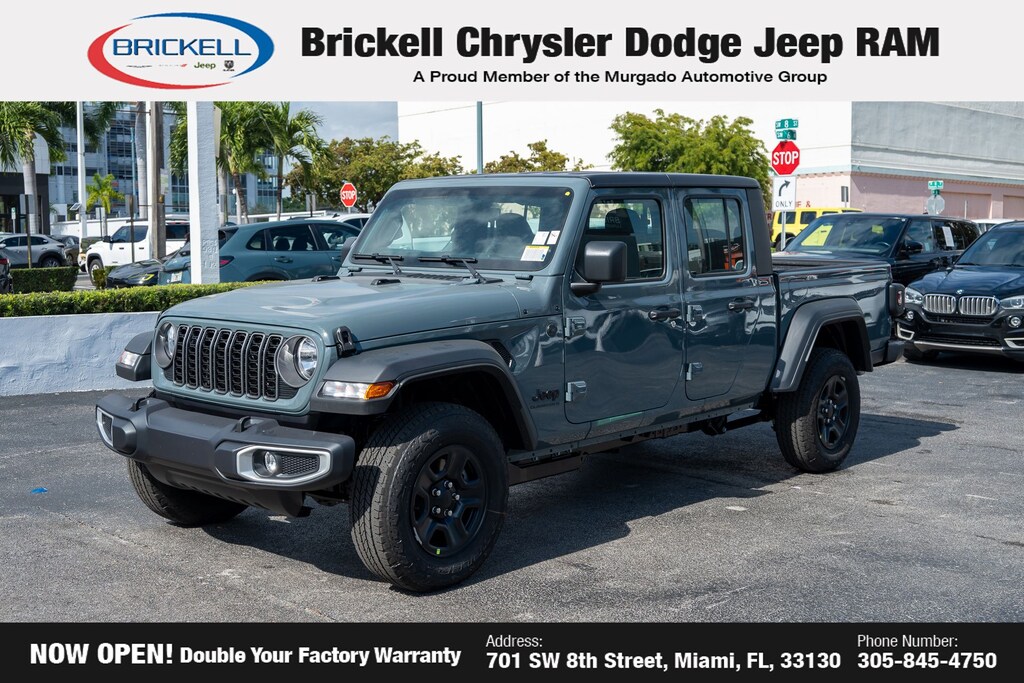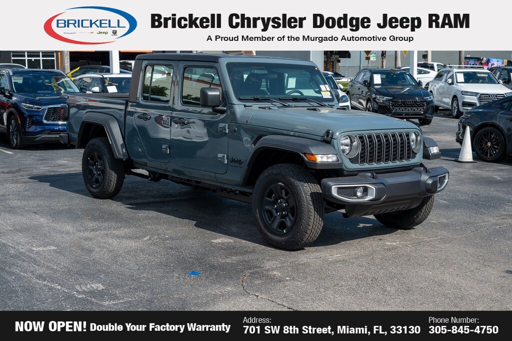 Price includes: $1500 - 2026 National Stellantis Loyalty Retail Bonus Cash . Exp. 02/02/2026 Discover Your Next Vehicle at Brickell Chrysler Dodge Jeep Ram Welcome to Brickell CDJR, where we go beyond selling cars. We double the factory powertrain warranty, giving you added peace of mind. Our dealership offers one of the largest new car inventories in the region, ensuring you find the right vehicle Prices displayed do not included our Perma-plate. Our state-of-the-art service department is the largest in the country and is open seven days a week from 7 AM to 9 PM. Visit us at 701 SW 8th St, Miami, FL 33130, or call 305-777-2800 to learn more and schedule a test drive. The displayed price includes an incentive for financing with Brickell CDJR Finance Company. Outside financing and bank drafts are not accepted. All pre-owned vehicle exports are subject to an export fee. Prices apply only to customers who live, work, or worship in Broward, Miami-Dade, Palm Beach, Monroe, Collier, Hendry, Lee, Glades, Martin, St. Lucie, Okeechobee, Manatee, Hillsborough, Osceola, or Orange County. Customers outside these counties will pay an additional $ Taxes, title, registration, and dealer fees apply. Factory MSRP: $46,035 Anvil Clearcoat 2026 Jeep Gladiator Sport 4WD 8-Speed Automatic 3.6L V6 24V VVT