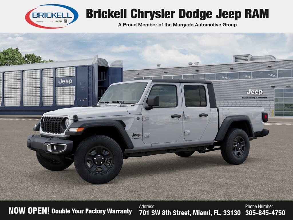 Price includes: $1500 - 2026 National Stellantis Loyalty Retail Bonus Cash . Exp. 01/05/2026 $500 - 2026 National 2026 Military Bonus Cash . Exp. 01/05/2026 Discover Your Next Vehicle at Brickell Chrysler Dodge Jeep Ram Welcome to Brickell CDJR, where we go beyond selling cars. We double the factory powertrain warranty, giving you added peace of mind. Our dealership offers one of the largest new car inventories in the region, ensuring you find the right vehicle Prices displayed do not included our Perma-plate. Our state-of-the-art service department is the largest in the country and is open seven days a week from 7 AM to 9 PM. Visit us at 701 SW 8th St, Miami, FL 33130, or call 305-777-2800 to learn more and schedule a test drive. The displayed price includes an incentive for financing with Brickell CDJR Finance Company. Outside financing and bank drafts are not accepted. All pre-owned vehicle exports are subject to an export fee. Prices apply only to customers who live, work, or worship in Broward, Miami-Dade, Palm Beach, Monroe, Collier, Hendry, Lee, Glades, Martin, St. Lucie, Okeechobee, Manatee, Hillsborough, Osceola, or Orange County. Customers outside these counties will pay an additional $ Taxes, title, registration, and dealer fees apply. Factory MSRP: $44,445 Bright White Clearcoat 2026 Jeep Gladiator Sport 4WD 8-Speed Automatic 3.6L V6 24V VVT
