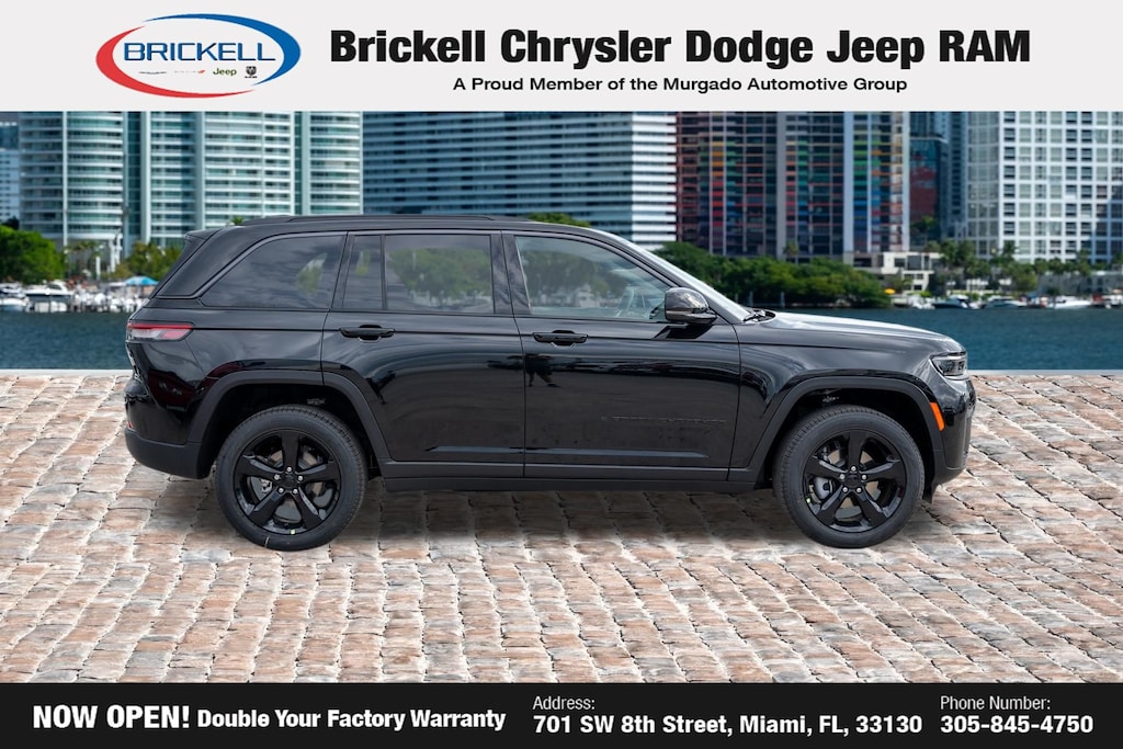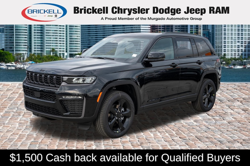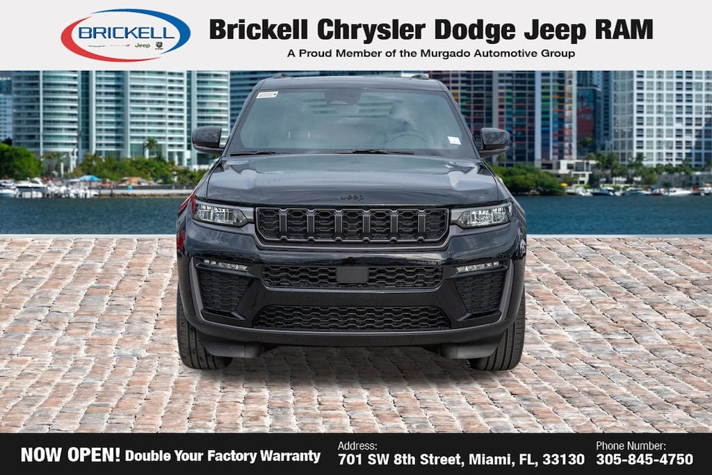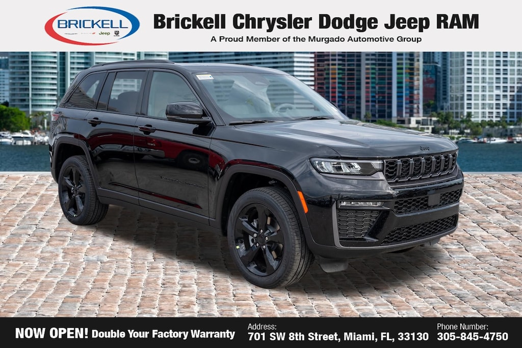 Price includes: $1500 - 2026 National Retail Bonus Cash . Exp. 04/30/2026 Discover Your Next Vehicle at Brickell Chrysler Dodge Jeep Ram Welcome to Brickell CDJR, where we go beyond selling cars. We double the factory powertrain warranty, giving you added peace of mind. Our dealership offers one of the largest new car inventories in the region, ensuring you find the right vehicle Prices displayed do not included our Perma-plate. Our state-of-the-art service department is the largest in the country and is open seven days a week from 7 AM to 9 PM. Visit us at 701 SW 8th St, Miami, FL 33130, or call 305-777-2800 to learn more and schedule a test drive. The displayed price includes an incentive for financing with Brickell CDJR Finance Company. Outside financing and bank drafts are not accepted. All pre-owned vehicle exports are subject to an export fee. Prices apply only to customers who live, work, or worship in Broward, Miami-Dade, Palm Beach, Monroe, Collier, Hendry, Lee, Glades, Martin, St. Lucie, Okeechobee, Manatee, Hillsborough, Osceola, or Orange County. Customers outside these counties will pay an additional $ Taxes, title, registration, and dealer fees apply. Factory MSRP: $48,580 Diamond Black Crystal Pearlcoat 2026 Jeep Grand Cherokee Limited RWD 8-Speed Automatic 2.0L I4 PDI Turbocharged DOHC 16V LEV3-SULEV30 324hp
