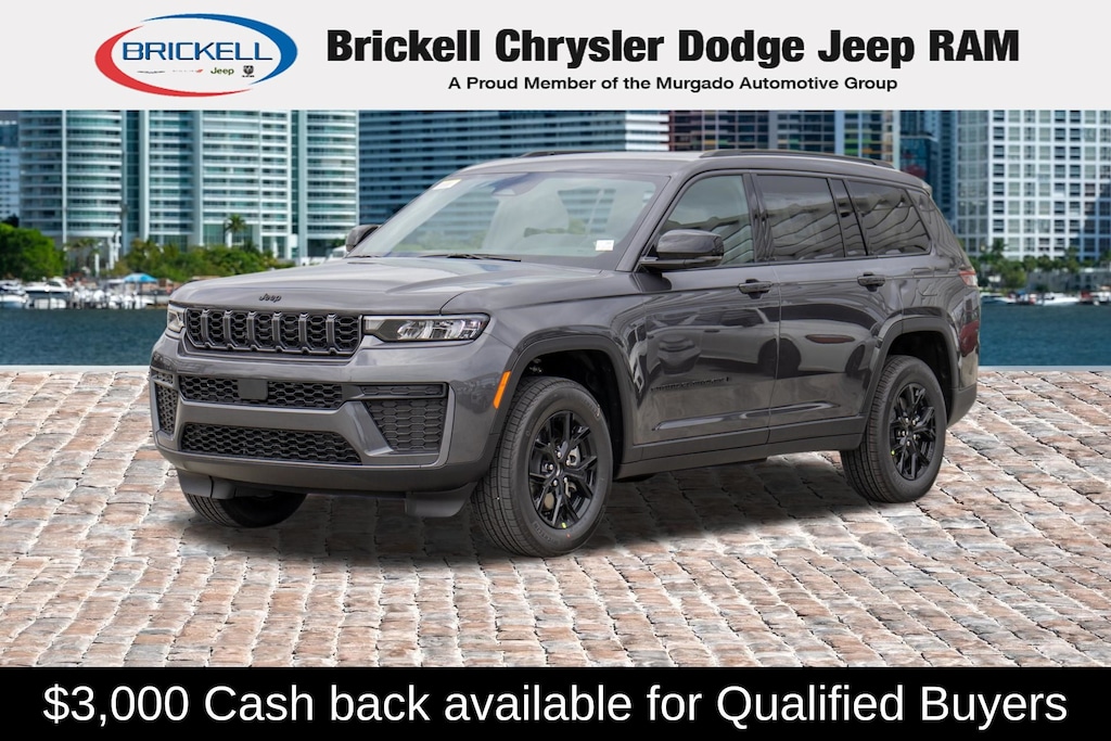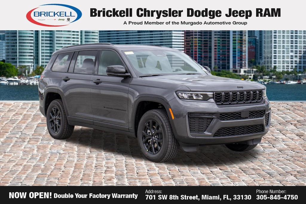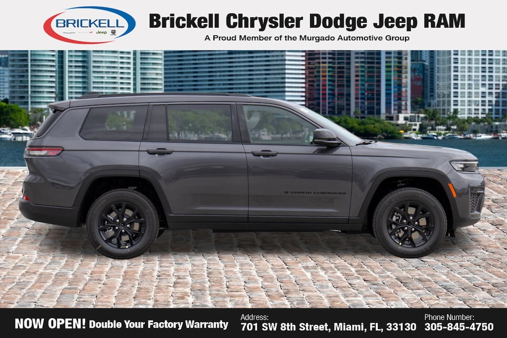 Price includes: $1000 - 2026 National Stellantis Loyalty Bonus Cash . Exp. 04/30/2026 $1500 - 2026 National Retail Bonus Cash . Exp. 04/30/2026 $500 - 2026 National 2026 Military Bonus Cash . Exp. 01/04/2027 Discover Your Next Vehicle at Brickell Chrysler Dodge Jeep Ram Welcome to Brickell CDJR, where we go beyond selling cars. We double the factory powertrain warranty, giving you added peace of mind. Our dealership offers one of the largest new car inventories in the region, ensuring you find the right vehicle Prices displayed do not included our Perma-plate. Our state-of-the-art service department is the largest in the country and is open seven days a week from 7 AM to 9 PM. Visit us at 701 SW 8th St, Miami, FL 33130, or call 305-777-2800 to learn more and schedule a test drive. The displayed price includes an incentive for financing with Brickell CDJR Finance Company. Outside financing and bank drafts are not accepted. All pre-owned vehicle exports are subject to an export fee. Prices apply only to customers who live, work, or worship in Broward, Miami-Dade, Palm Beach, Monroe, Collier, Hendry, Lee, Glades, Martin, St. Lucie, Okeechobee, Manatee, Hillsborough, Osceola, or Orange County. Customers outside these counties will pay an additional $ Taxes, title, registration, and dealer fees apply. Factory MSRP: $50,945 Baltic Gray Metallic Clearcoat 2026 Jeep Grand Cherokee L Laredo 4WD 8-Speed Automatic 2.0L Hurricane 4 Turbo with ESS