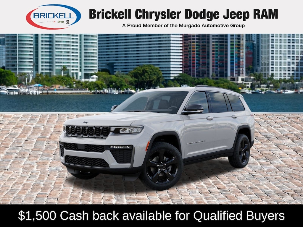 Price includes: $1500 - 2026 National Retail Bonus Cash . Exp. 04/30/2026 Discover Your Next Vehicle at Brickell Chrysler Dodge Jeep Ram Welcome to Brickell CDJR, where we go beyond selling cars. We double the factory powertrain warranty, giving you added peace of mind. Our dealership offers one of the largest new car inventories in the region, ensuring you find the right vehicle Prices displayed do not included our Perma-plate. Our state-of-the-art service department is the largest in the country and is open seven days a week from 7 AM to 9 PM. Visit us at 701 SW 8th St, Miami, FL 33130, or call 305-777-2800 to learn more and schedule a test drive. The displayed price includes an incentive for financing with Brickell CDJR Finance Company. Outside financing and bank drafts are not accepted. All pre-owned vehicle exports are subject to an export fee. Prices apply only to customers who live, work, or worship in Broward, Miami-Dade, Palm Beach, Monroe, Collier, Hendry, Lee, Glades, Martin, St. Lucie, Okeechobee, Manatee, Hillsborough, Osceola, or Orange County. Customers outside these counties will pay an additional $ Taxes, title, registration, and dealer fees apply. Factory MSRP: $52,910 Bright White Clearcoat 2026 Jeep Grand Cherokee L Limited 4WD 8-Speed Automatic 2.0L Hurricane 4 Turbo with ESS