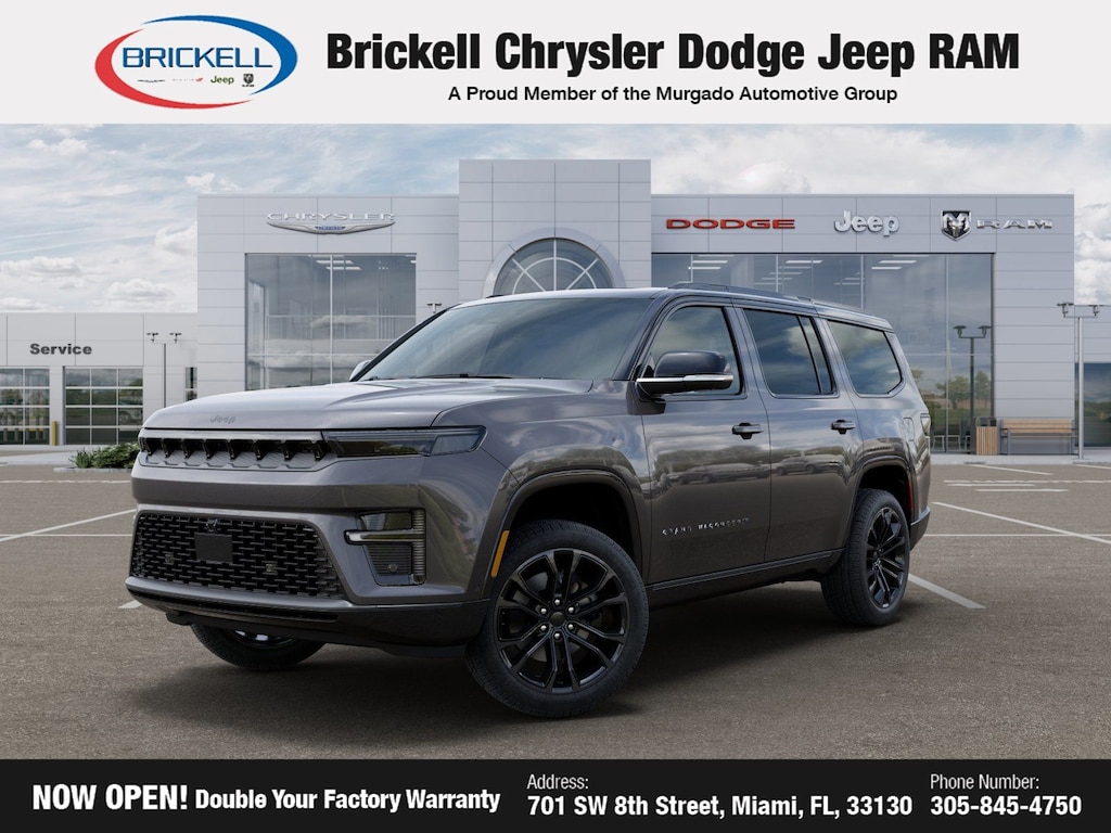 Discover Your Next Vehicle at Brickell Chrysler Dodge Jeep Ram Welcome to Brickell CDJR, where we go beyond selling cars. We double the factory powertrain warranty, giving you added peace of mind. Our dealership offers one of the largest new car inventories in the region, ensuring you find the right vehicle Prices displayed do not included our Perma-plate. Our state-of-the-art service department is the largest in the country and is open seven days a week from 7 AM to 9 PM. Visit us at 701 SW 8th St, Miami, FL 33130, or call 305-777-2800 to learn more and schedule a test drive. The displayed price includes an incentive for financing with Brickell CDJR Finance Company. Outside financing and bank drafts are not accepted. All pre-owned vehicle exports are subject to an export fee. Prices apply only to customers who live, work, or worship in Broward, Miami-Dade, Palm Beach, Monroe, Collier, Hendry, Lee, Glades, Martin, St. Lucie, Okeechobee, Manatee, Hillsborough, Osceola, or Orange County. Customers outside these counties will pay an additional $ Taxes, title, registration, and dealer fees apply. Factory MSRP: $96,680 Baltic Gray Metallic Clearcoat 2026 Jeep Grand Wagoneer Summit 4WD 8-Speed Automatic 3.0L I6
