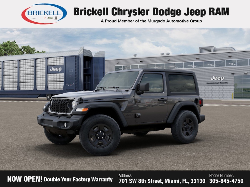 Price includes: $1500 - 2026 National Stellantis Loyalty Retail Bonus Cash . Exp. 02/02/2026 Discover Your Next Vehicle at Brickell Chrysler Dodge Jeep Ram Welcome to Brickell CDJR, where we go beyond selling cars. We double the factory powertrain warranty, giving you added peace of mind. Our dealership offers one of the largest new car inventories in the region, ensuring you find the right vehicle Prices displayed do not included our Perma-plate. Our state-of-the-art service department is the largest in the country and is open seven days a week from 7 AM to 9 PM. Visit us at 701 SW 8th St, Miami, FL 33130, or call 305-777-2800 to learn more and schedule a test drive. The displayed price includes an incentive for financing with Brickell CDJR Finance Company. Outside financing and bank drafts are not accepted. All pre-owned vehicle exports are subject to an export fee. Prices apply only to customers who live, work, or worship in Broward, Miami-Dade, Palm Beach, Monroe, Collier, Hendry, Lee, Glades, Martin, St. Lucie, Okeechobee, Manatee, Hillsborough, Osceola, or Orange County. Customers outside these counties will pay an additional $ Taxes, title, registration, and dealer fees apply. Factory MSRP: $41,880 granite crystal metallic clearcoat 2026 Jeep Wrangler Sport 4WD 8-Speed Automatic 2.0L I4 DOHC