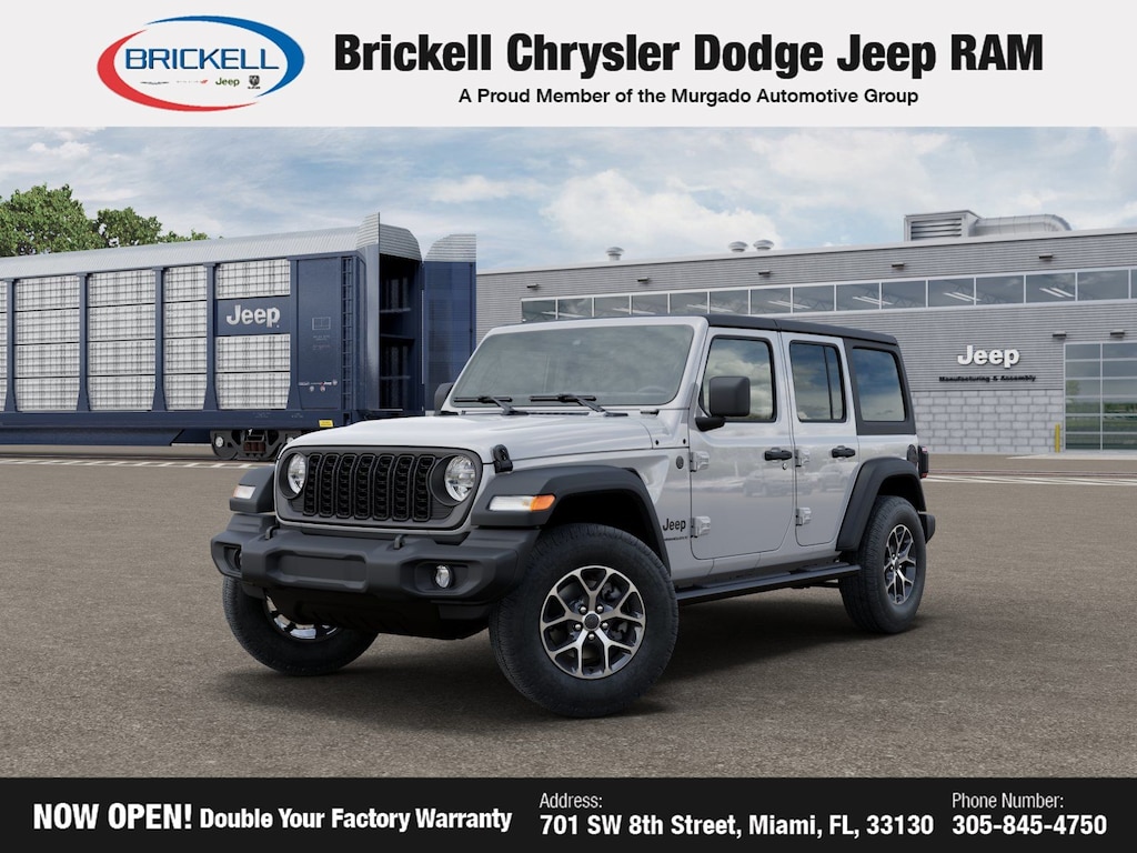 Price includes: $1500 - 2026 National Stellantis Loyalty Retail Bonus Cash . Exp. 01/05/2026 $500 - 2026 National 2026 Military Bonus Cash . Exp. 01/05/2026 Discover Your Next Vehicle at Brickell Chrysler Dodge Jeep Ram Welcome to Brickell CDJR, where we go beyond selling cars. We double the factory powertrain warranty, giving you added peace of mind. Our dealership offers one of the largest new car inventories in the region, ensuring you find the right vehicle Prices displayed do not included our Perma-plate. Our state-of-the-art service department is the largest in the country and is open seven days a week from 7 AM to 9 PM. Visit us at 701 SW 8th St, Miami, FL 33130, or call 305-777-2800 to learn more and schedule a test drive. The displayed price includes an incentive for financing with Brickell CDJR Finance Company. Outside financing and bank drafts are not accepted. All pre-owned vehicle exports are subject to an export fee. Prices apply only to customers who live, work, or worship in Broward, Miami-Dade, Palm Beach, Monroe, Collier, Hendry, Lee, Glades, Martin, St. Lucie, Okeechobee, Manatee, Hillsborough, Osceola, or Orange County. Customers outside these counties will pay an additional $ Taxes, title, registration, and dealer fees apply. Factory MSRP: $55,585 Bright White Clearcoat 2026 Jeep Wrangler Sport S 4WD 8-Speed Automatic 2.0L I4 DOHC