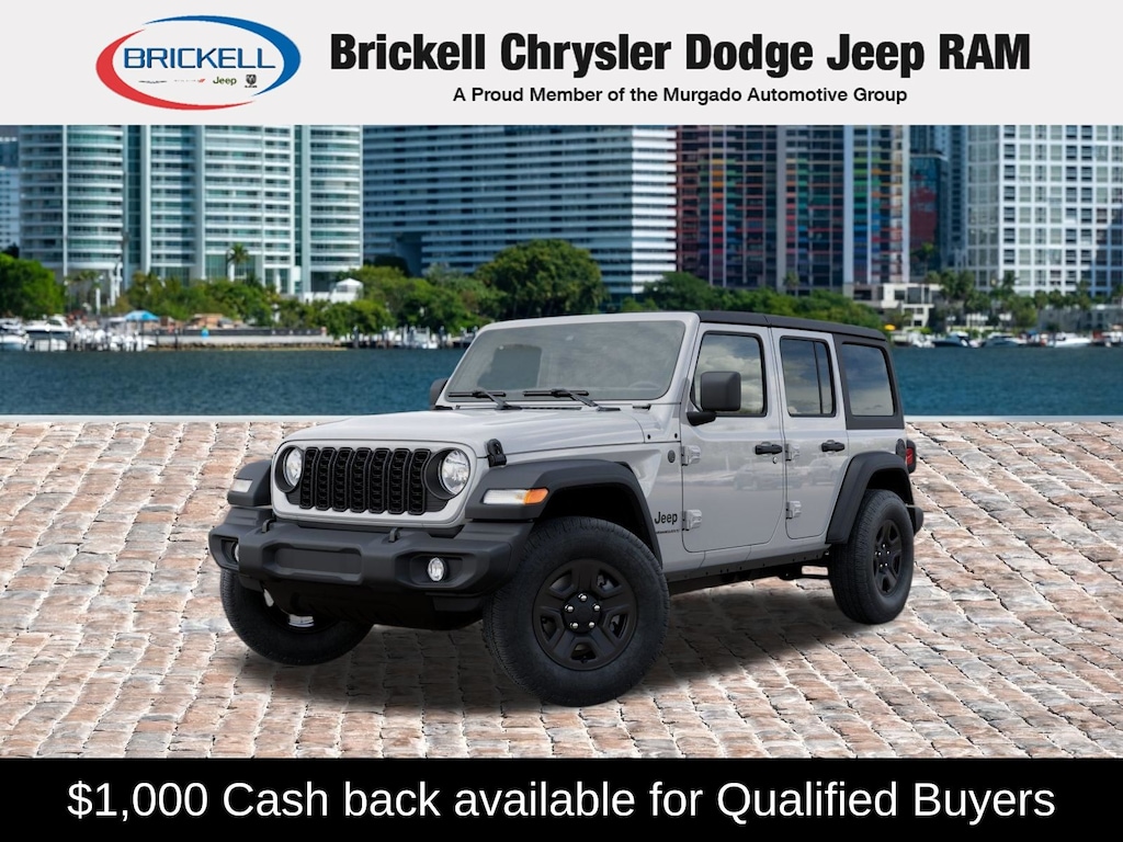 Price includes: $1000 - 2026 National Retail Bonus Cash . Exp. 04/30/2026 Discover Your Next Vehicle at Brickell Chrysler Dodge Jeep Ram Welcome to Brickell CDJR, where we go beyond selling cars. We double the factory powertrain warranty, giving you added peace of mind. Our dealership offers one of the largest new car inventories in the region, ensuring you find the right vehicle Prices displayed do not included our Perma-plate. Our state-of-the-art service department is the largest in the country and is open seven days a week from 7 AM to 9 PM. Visit us at 701 SW 8th St, Miami, FL 33130, or call 305-777-2800 to learn more and schedule a test drive. The displayed price includes an incentive for financing with Brickell CDJR Finance Company. Outside financing and bank drafts are not accepted. All pre-owned vehicle exports are subject to an export fee. Prices apply only to customers who live, work, or worship in Broward, Miami-Dade, Palm Beach, Monroe, Collier, Hendry, Lee, Glades, Martin, St. Lucie, Okeechobee, Manatee, Hillsborough, Osceola, or Orange County. Customers outside these counties will pay an additional $ Taxes, title, registration, and dealer fees apply. Factory MSRP: $46,630 bright white clearcoat 2026 Jeep Wrangler Sport 4WD 8-Speed Automatic 2.0L I4 DOHC