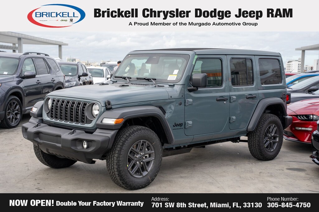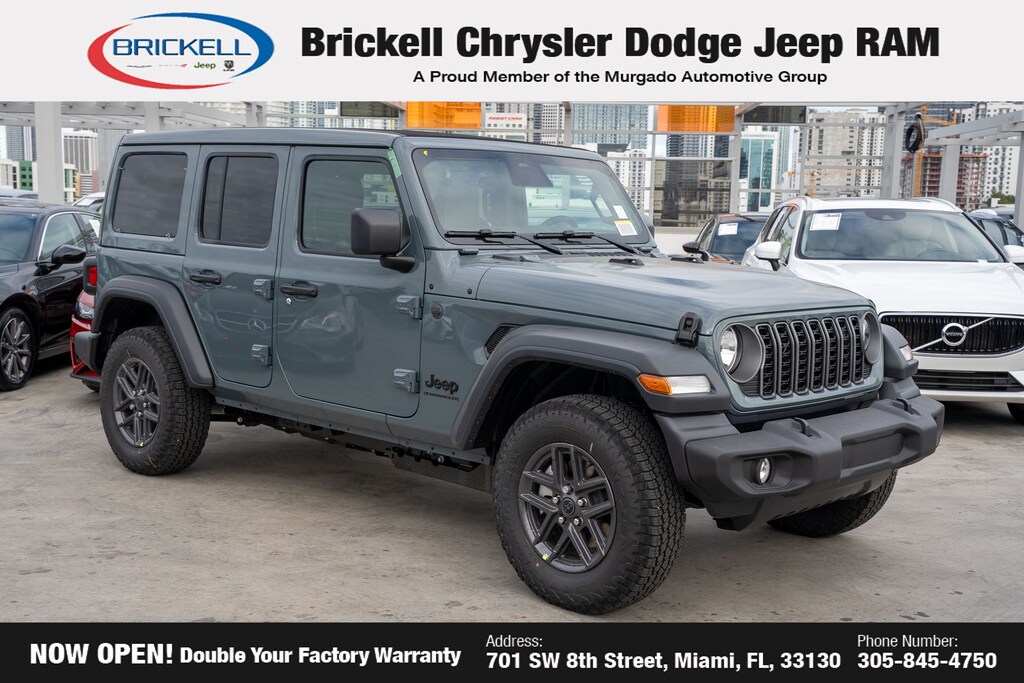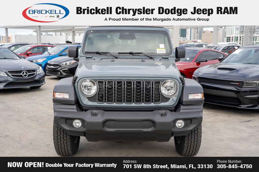 Price includes: $1500 - 2026 National Stellantis Loyalty Retail Bonus Cash . Exp. 02/02/2026 Discover Your Next Vehicle at Brickell Chrysler Dodge Jeep Ram Welcome to Brickell CDJR, where we go beyond selling cars. We double the factory powertrain warranty, giving you added peace of mind. Our dealership offers one of the largest new car inventories in the region, ensuring you find the right vehicle Prices displayed do not included our Perma-plate. Our state-of-the-art service department is the largest in the country and is open seven days a week from 7 AM to 9 PM. Visit us at 701 SW 8th St, Miami, FL 33130, or call 305-777-2800 to learn more and schedule a test drive. The displayed price includes an incentive for financing with Brickell CDJR Finance Company. Outside financing and bank drafts are not accepted. All pre-owned vehicle exports are subject to an export fee. Prices apply only to customers who live, work, or worship in Broward, Miami-Dade, Palm Beach, Monroe, Collier, Hendry, Lee, Glades, Martin, St. Lucie, Okeechobee, Manatee, Hillsborough, Osceola, or Orange County. Customers outside these counties will pay an additional $ Taxes, title, registration, and dealer fees apply. Factory MSRP: $48,235 Anvil Clear Coat 2026 Jeep Wrangler Sport S 4WD 8-Speed Automatic 2.0L I4 DOHC