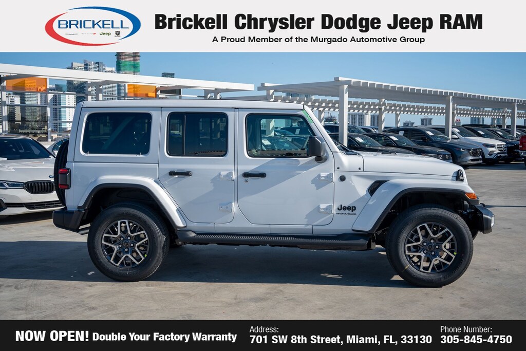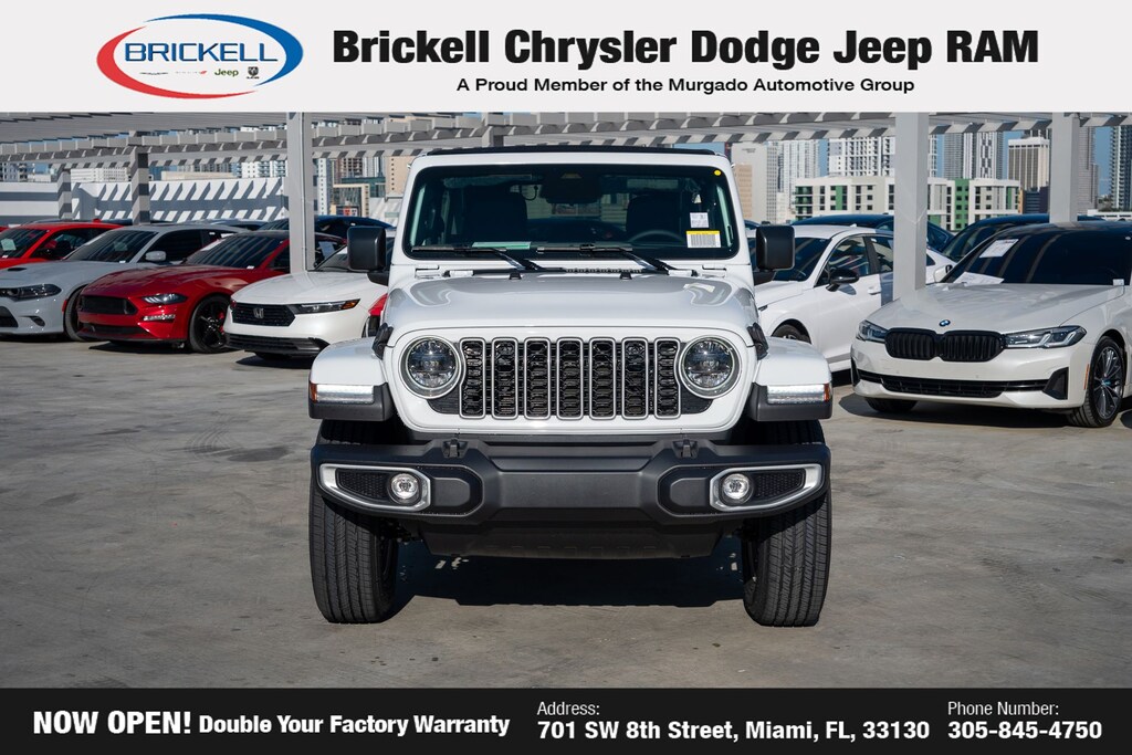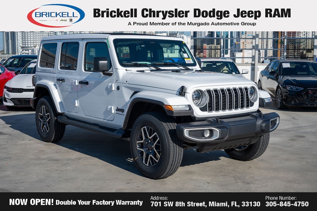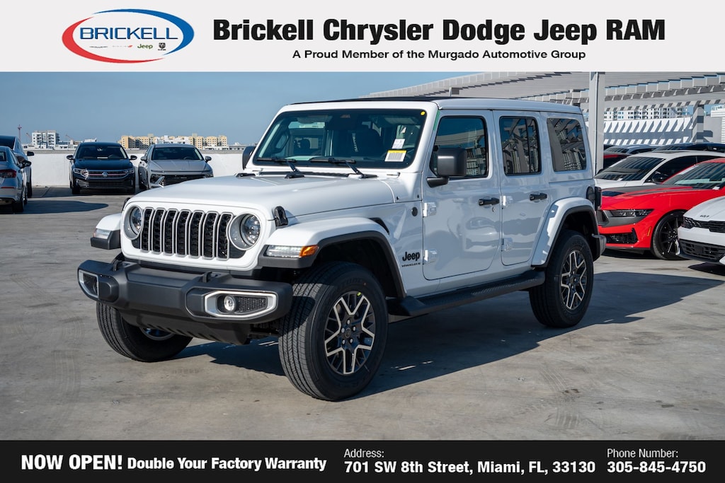 Price includes: $500 - 2026 National 2026 Military Bonus Cash . Exp. 01/04/2027 Discover Your Next Vehicle at Brickell Chrysler Dodge Jeep Ram Welcome to Brickell CDJR, where we go beyond selling cars. We double the factory powertrain warranty, giving you added peace of mind. Our dealership offers one of the largest new car inventories in the region, ensuring you find the right vehicle Prices displayed do not included our Perma-plate. Our state-of-the-art service department is the largest in the country and is open seven days a week from 7 AM to 9 PM. Visit us at 701 SW 8th St, Miami, FL 33130, or call 305-777-2800 to learn more and schedule a test drive. The displayed price includes an incentive for financing with Brickell CDJR Finance Company. Outside financing and bank drafts are not accepted. All pre-owned vehicle exports are subject to an export fee. Prices apply only to customers who live, work, or worship in Broward, Miami-Dade, Palm Beach, Monroe, Collier, Hendry, Lee, Glades, Martin, St. Lucie, Okeechobee, Manatee, Hillsborough, Osceola, or Orange County. Customers outside these counties will pay an additional $ Taxes, title, registration, and dealer fees apply. Factory MSRP: $56,745 Bright White Clearcoat 2026 Jeep Wrangler Sahara 4WD 8-Speed Automatic 3.6L V6 24V VVT