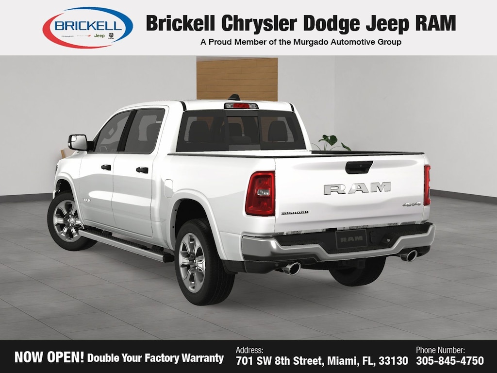 Price includes: $500 - 2025 National 2025 Military Bonus Cash. Exp. 01/05/2026 Discover Your Next Vehicle at Brickell Chrysler Dodge Jeep Ram Welcome to Brickell CDJR, where we go beyond selling cars. We double the factory powertrain warranty, giving you added peace of mind. Our dealership offers one of the largest new car inventories in the region, ensuring you find the right vehicle Prices displayed do not included our Perma-plate. Our state-of-the-art service department is the largest in the country and is open seven days a week from 7 AM to 9 PM. Visit us at 701 SW 8th St, Miami, FL 33130, or call 305-777-2800 to learn more and schedule a test drive. The displayed price includes an incentive for financing with Brickell CDJR Finance Company. Outside financing and bank drafts are not accepted. All pre-owned vehicle exports are subject to an export fee. Prices apply only to customers who live, work, or worship in Broward, Miami-Dade, Palm Beach, Monroe, Collier, Hendry, Lee, Glades, Martin, St. Lucie, Okeechobee, Manatee, Hillsborough, Osceola, or Orange County. Customers outside these counties will pay an additional $ Taxes, title, registration, and dealer fees apply. Factory MSRP: $61,420 Bright White Clearcoat 2025 Ram 1500 Big Horn/Lone Star 4WD 8-Speed Automatic 3.0L I6