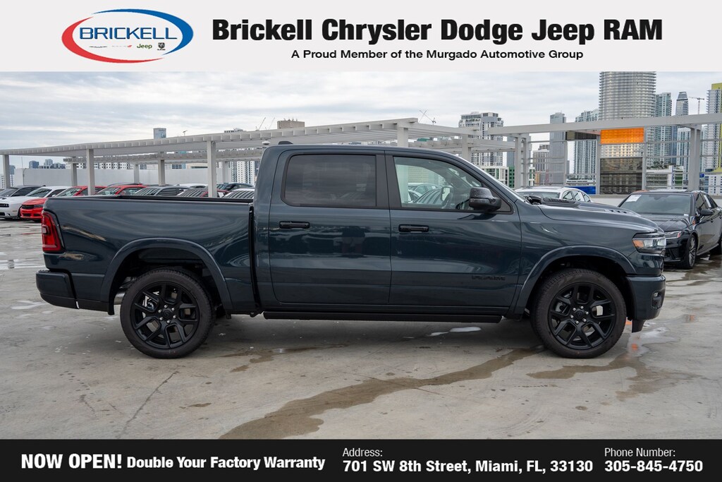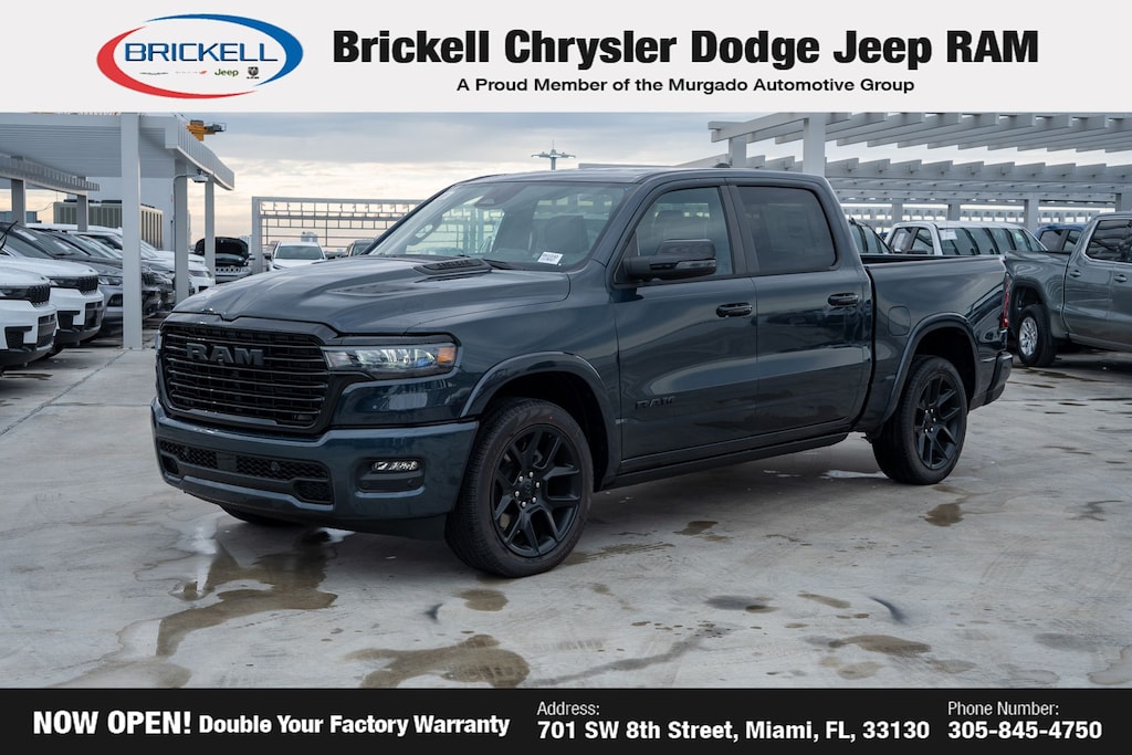 Price includes: $1000 - 2026 National Bonus Cash . Exp. 03/31/2026 $3500 - 2026 National Retail Bonus Cash . Exp. 03/31/2026 $500 - 2026 National 2026 Military Bonus Cash . Exp. 01/04/2027 Discover Your Next Vehicle at Brickell Chrysler Dodge Jeep Ram Welcome to Brickell CDJR, where we go beyond selling cars. We double the factory powertrain warranty, giving you added peace of mind. Our dealership offers one of the largest new car inventories in the region, ensuring you find the right vehicle Prices displayed do not included our Perma-plate. Our state-of-the-art service department is the largest in the country and is open seven days a week from 7 AM to 9 PM. Visit us at 701 SW 8th St, Miami, FL 33130, or call 305-777-2800 to learn more and schedule a test drive. The displayed price includes an incentive for financing with Brickell CDJR Finance Company. Outside financing and bank drafts are not accepted. All pre-owned vehicle exports are subject to an export fee. Prices apply only to customers who live, work, or worship in Broward, Miami-Dade, Palm Beach, Monroe, Collier, Hendry, Lee, Glades, Martin, St. Lucie, Okeechobee, Manatee, Hillsborough, Osceola, or Orange County. Customers outside these counties will pay an additional $ Taxes, title, registration, and dealer fees apply. New Price! Factory MSRP: $75,235 Forged Blue Metallic 2026 Ram 1500 Laramie 4WD 8-Speed Automatic 3.0L I6