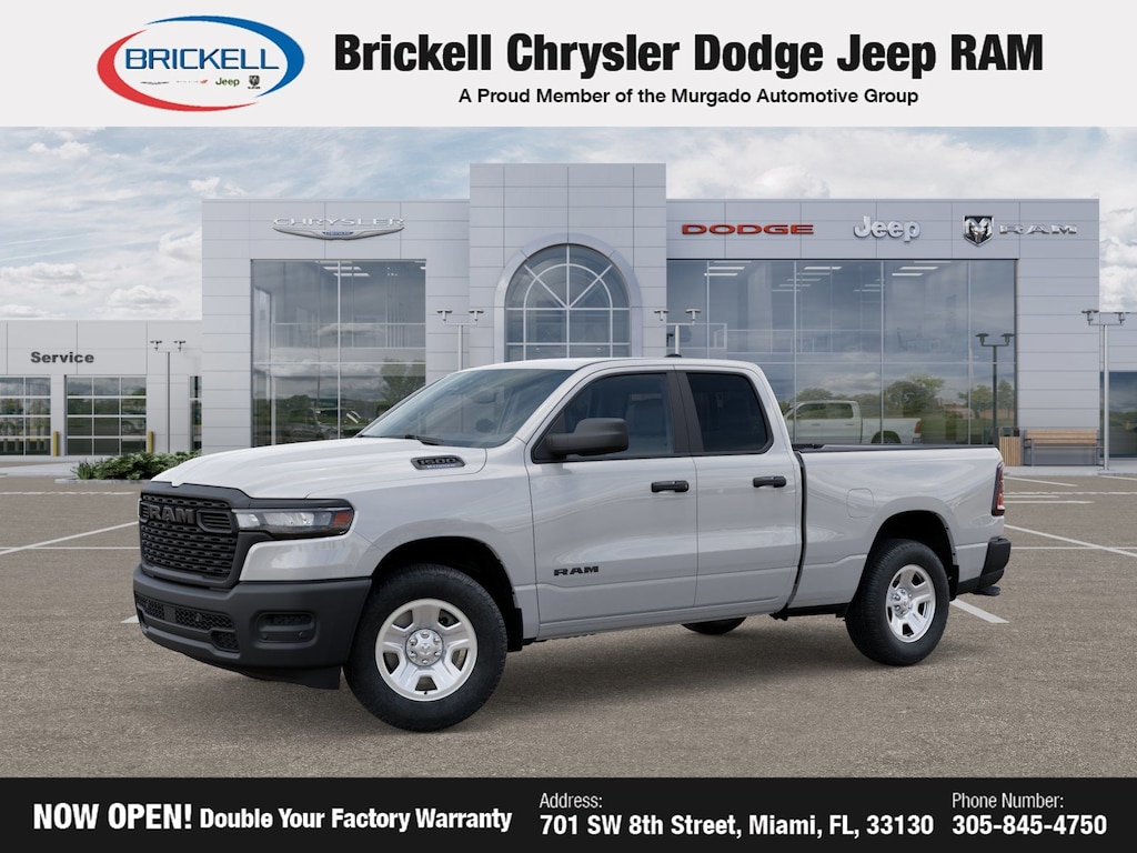 Price includes: $2500 - 2026 National Retail Consumer Cash . Exp. 03/31/2026 $500 - 2026 National 2026 Military Bonus Cash . Exp. 01/04/2027 Discover Your Next Vehicle at Brickell Chrysler Dodge Jeep Ram Welcome to Brickell CDJR, where we go beyond selling cars. We double the factory powertrain warranty, giving you added peace of mind. Our dealership offers one of the largest new car inventories in the region, ensuring you find the right vehicle Prices displayed do not included our Perma-plate. Our state-of-the-art service department is the largest in the country and is open seven days a week from 7 AM to 9 PM. Visit us at 701 SW 8th St, Miami, FL 33130, or call 305-777-2800 to learn more and schedule a test drive. The displayed price includes an incentive for financing with Brickell CDJR Finance Company. Outside financing and bank drafts are not accepted. All pre-owned vehicle exports are subject to an export fee. Prices apply only to customers who live, work, or worship in Broward, Miami-Dade, Palm Beach, Monroe, Collier, Hendry, Lee, Glades, Martin, St. Lucie, Okeechobee, Manatee, Hillsborough, Osceola, or Orange County. Customers outside these counties will pay an additional $ Taxes, title, registration, and dealer fees apply. Factory MSRP: $46,810 Bright White Clearcoat 2026 Ram 1500 Tradesman RWD 8-Speed Automatic 3.6L V6 24V VVT