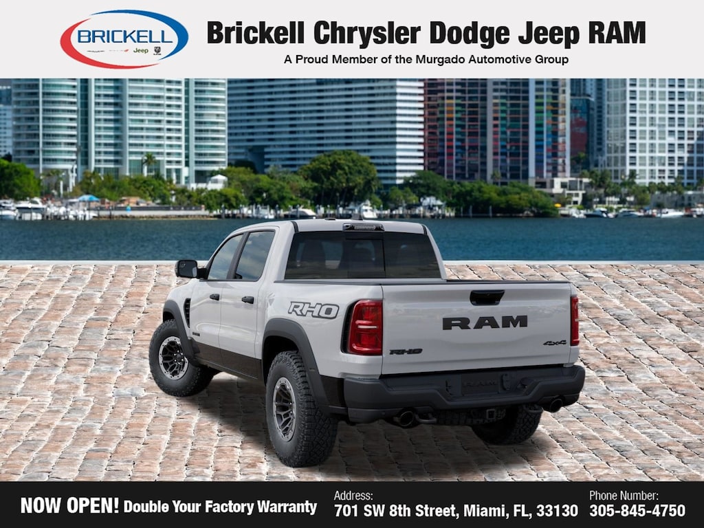 Discover Your Next Vehicle at Brickell Chrysler Dodge Jeep Ram Welcome to Brickell CDJR, where we go beyond selling cars. We double the factory powertrain warranty, giving you added peace of mind. Our dealership offers one of the largest new car inventories in the region, ensuring you find the right vehicle Prices displayed do not included our Perma-plate. Our state-of-the-art service department is the largest in the country and is open seven days a week from 7 AM to 9 PM. Visit us at 701 SW 8th St, Miami, FL 33130, or call 305-777-2800 to learn more and schedule a test drive. The displayed price includes an incentive for financing with Brickell CDJR Finance Company. Outside financing and bank drafts are not accepted. All pre-owned vehicle exports are subject to an export fee. Prices apply only to customers who live, work, or worship in Broward, Miami-Dade, Palm Beach, Monroe, Collier, Hendry, Lee, Glades, Martin, St. Lucie, Okeechobee, Manatee, Hillsborough, Osceola, or Orange County. Customers outside these counties will pay an additional $ Taxes, title, registration, and dealer fees apply. Factory MSRP: $94,155 Bright White Clearcoat 2026 Ram 1500 RHO 4WD 8-Speed Automatic 3.0L I6