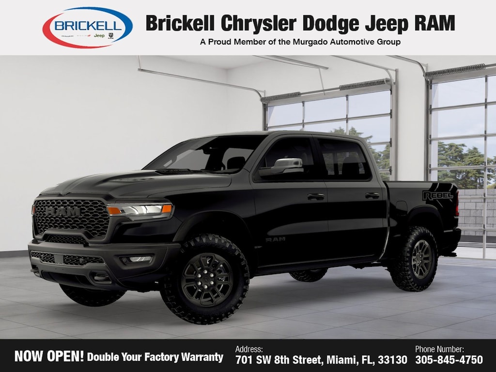 Price includes: $3500 - 2026 National Retail Consumer Cash . Exp. 11/03/2025 Discover Your Next Vehicle at Brickell Chrysler Dodge Jeep Ram Welcome to Brickell CDJR, where we go beyond selling cars. We double the factory powertrain warranty, giving you added peace of mind. Our dealership offers one of the largest new car inventories in the region, ensuring you find the right vehicle Prices displayed do not included our Perma-plate. Our state-of-the-art service department is the largest in the country and is open seven days a week from 7 AM to 9 PM. Visit us at 701 SW 8th St, Miami, FL 33130, or call 305-777-2800 to learn more and schedule a test drive. The displayed price includes an incentive for financing with Brickell CDJR Finance Company. Outside financing and bank drafts are not accepted. All pre-owned vehicle exports are subject to an export fee. Prices apply only to customers who live, work, or worship in Broward, Miami-Dade, Palm Beach, Monroe, Collier, Hendry, Lee, Glades, Martin, St. Lucie, Okeechobee, Manatee, Hillsborough, Osceola, or Orange County. Customers outside these counties will pay an additional $ Taxes, title, registration, and dealer fees apply. Factory MSRP: $72,265 Diamond Black Crystal Pearlcoat 2026 Ram 1500 Rebel 4WD 8-Speed Automatic 3.0L I6