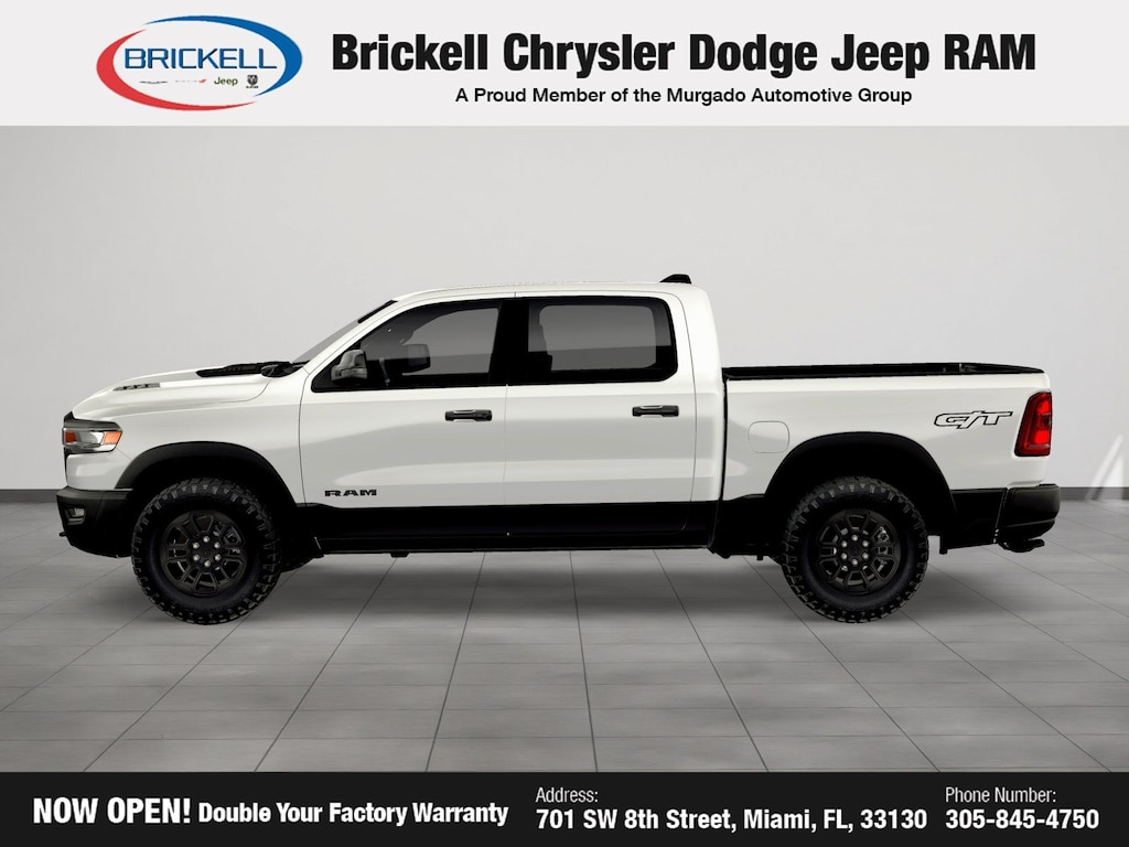 Price includes: $3500 - 2026 National Retail Consumer Cash . Exp. 11/03/2025 Discover Your Next Vehicle at Brickell Chrysler Dodge Jeep Ram Welcome to Brickell CDJR, where we go beyond selling cars. We double the factory powertrain warranty, giving you added peace of mind. Our dealership offers one of the largest new car inventories in the region, ensuring you find the right vehicle Prices displayed do not included our Perma-plate. Our state-of-the-art service department is the largest in the country and is open seven days a week from 7 AM to 9 PM. Visit us at 701 SW 8th St, Miami, FL 33130, or call 305-777-2800 to learn more and schedule a test drive. The displayed price includes an incentive for financing with Brickell CDJR Finance Company. Outside financing and bank drafts are not accepted. All pre-owned vehicle exports are subject to an export fee. Prices apply only to customers who live, work, or worship in Broward, Miami-Dade, Palm Beach, Monroe, Collier, Hendry, Lee, Glades, Martin, St. Lucie, Okeechobee, Manatee, Hillsborough, Osceola, or Orange County. Customers outside these counties will pay an additional $ Taxes, title, registration, and dealer fees apply. Factory MSRP: $73,520 Bright White Clearcoat 2026 Ram 1500 Rebel 4WD 8-Speed Automatic 3.0L I6