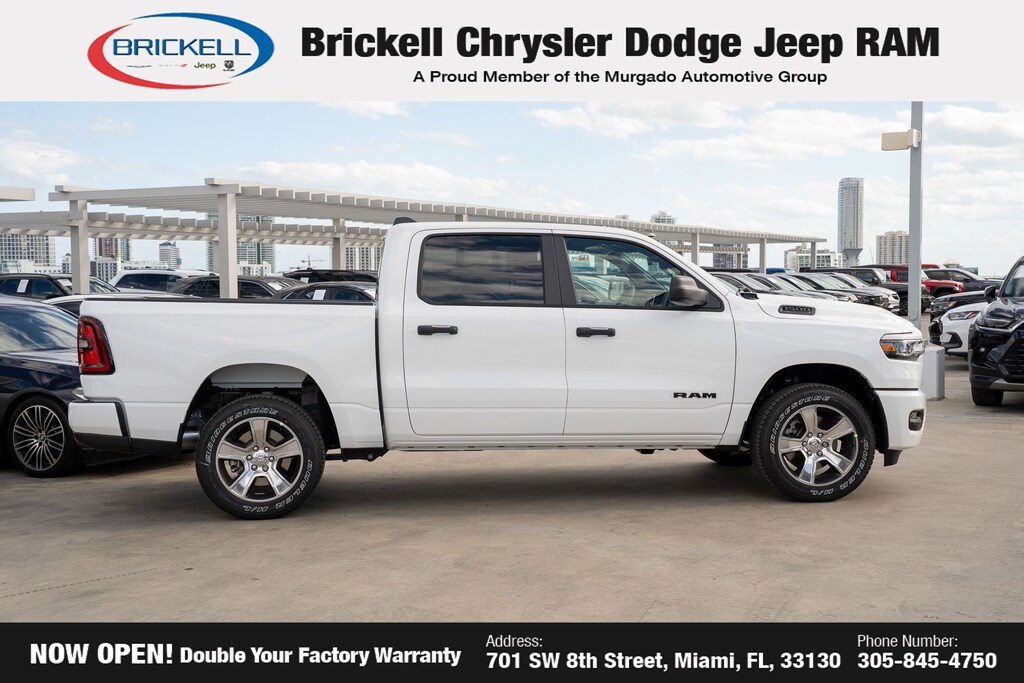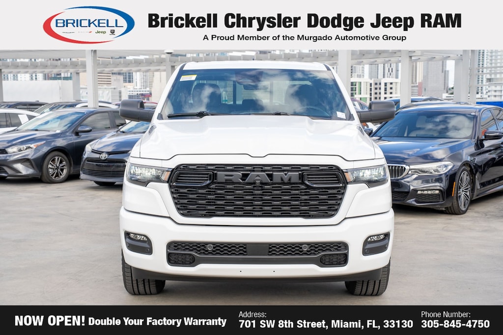 Price includes: $3500 - 2026 National Retail Consumer Cash . Exp. 01/05/2026 Discover Your Next Vehicle at Brickell Chrysler Dodge Jeep Ram Welcome to Brickell CDJR, where we go beyond selling cars. We double the factory powertrain warranty, giving you added peace of mind. Our dealership offers one of the largest new car inventories in the region, ensuring you find the right vehicle Prices displayed do not included our Perma-plate. Our state-of-the-art service department is the largest in the country and is open seven days a week from 7 AM to 9 PM. Visit us at 701 SW 8th St, Miami, FL 33130, or call 305-777-2800 to learn more and schedule a test drive. The displayed price includes an incentive for financing with Brickell CDJR Finance Company. Outside financing and bank drafts are not accepted. All pre-owned vehicle exports are subject to an export fee. Prices apply only to customers who live, work, or worship in Broward, Miami-Dade, Palm Beach, Monroe, Collier, Hendry, Lee, Glades, Martin, St. Lucie, Okeechobee, Manatee, Hillsborough, Osceola, or Orange County. Customers outside these counties will pay an additional $ Taxes, title, registration, and dealer fees apply. Factory MSRP: $51,425 Bright White Clearcoat 2026 Ram 1500 Express RWD 8-Speed Automatic 3.0L I6