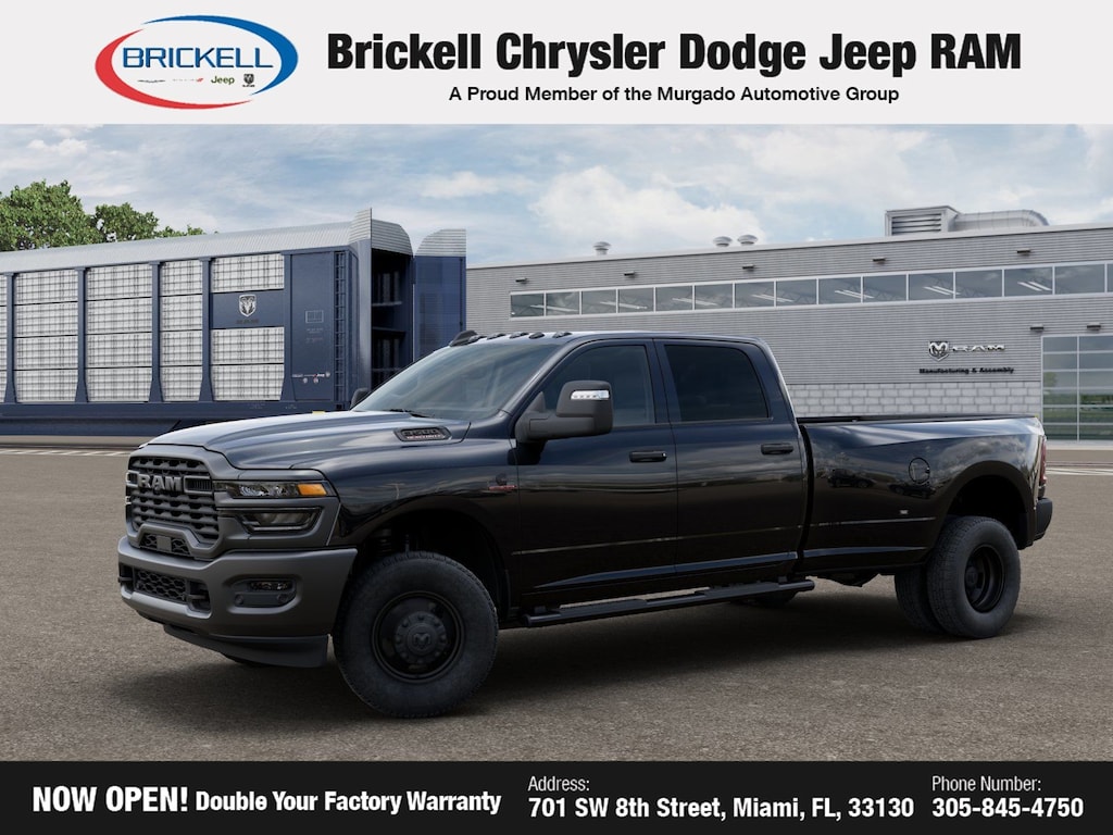 Price includes: $1000 - 2026 National Bonus Cash . Exp. 03/31/2026 $500 - 2026 National 2026 Military Bonus Cash . Exp. 01/04/2027 Discover Your Next Vehicle at Brickell Chrysler Dodge Jeep Ram Welcome to Brickell CDJR, where we go beyond selling cars. We double the factory powertrain warranty, giving you added peace of mind. Our dealership offers one of the largest new car inventories in the region, ensuring you find the right vehicle Prices displayed do not included our Perma-plate. Our state-of-the-art service department is the largest in the country and is open seven days a week from 7 AM to 9 PM. Visit us at 701 SW 8th St, Miami, FL 33130, or call 305-777-2800 to learn more and schedule a test drive. The displayed price includes an incentive for financing with Brickell CDJR Finance Company. Outside financing and bank drafts are not accepted. All pre-owned vehicle exports are subject to an export fee. Prices apply only to customers who live, work, or worship in Broward, Miami-Dade, Palm Beach, Monroe, Collier, Hendry, Lee, Glades, Martin, St. Lucie, Okeechobee, Manatee, Hillsborough, Osceola, or Orange County. Customers outside these counties will pay an additional $ Taxes, title, registration, and dealer fees apply. Factory MSRP: $76,405 Diamond Black Crystal Pearlcoat 2026 Ram 3500 Tradesman 4WD 8-Speed Automatic 6.7L I6