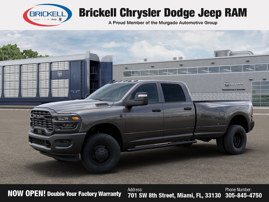 Price includes: $1000 - 2026 National Bonus Cash . Exp. 03/31/2026 $500 - 2026 National 2026 Military Bonus Cash . Exp. 01/04/2027 Discover Your Next Vehicle at Brickell Chrysler Dodge Jeep Ram Welcome to Brickell CDJR, where we go beyond selling cars. We double the factory powertrain warranty, giving you added peace of mind. Our dealership offers one of the largest new car inventories in the region, ensuring you find the right vehicle Prices displayed do not included our Perma-plate. Our state-of-the-art service department is the largest in the country and is open seven days a week from 7 AM to 9 PM. Visit us at 701 SW 8th St, Miami, FL 33130, or call 305-777-2800 to learn more and schedule a test drive. The displayed price includes an incentive for financing with Brickell CDJR Finance Company. Outside financing and bank drafts are not accepted. All pre-owned vehicle exports are subject to an export fee. Prices apply only to customers who live, work, or worship in Broward, Miami-Dade, Palm Beach, Monroe, Collier, Hendry, Lee, Glades, Martin, St. Lucie, Okeechobee, Manatee, Hillsborough, Osceola, or Orange County. Customers outside these counties will pay an additional $ Taxes, title, registration, and dealer fees apply. Factory MSRP: $76,405 Granite Crystal Metallic Clearcoat 2026 Ram 3500 Tradesman 4WD 8-Speed Automatic 6.7L I6