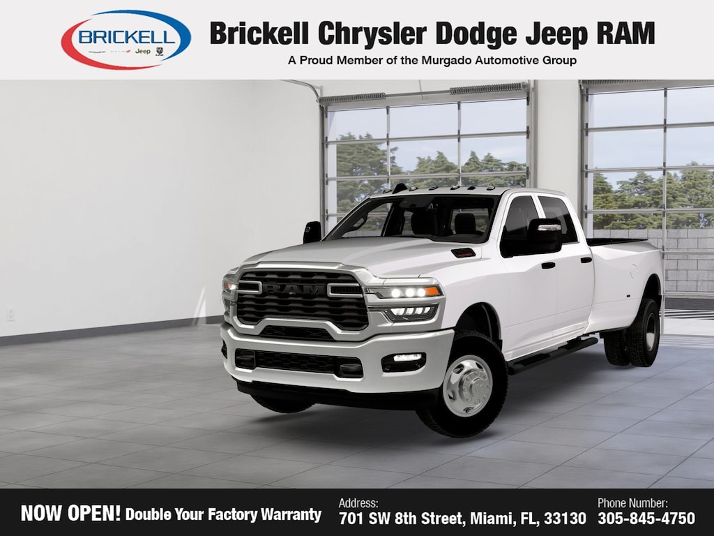 Price includes: $1000 - 2026 National Bonus Cash . Exp. 11/03/2025 Discover Your Next Vehicle at Brickell Chrysler Dodge Jeep Ram Welcome to Brickell CDJR, where we go beyond selling cars. We double the factory powertrain warranty, giving you added peace of mind. Our dealership offers one of the largest new car inventories in the region, ensuring you find the right vehicle Prices displayed do not included our Perma-plate. Our state-of-the-art service department is the largest in the country and is open seven days a week from 7 AM to 9 PM. Visit us at 701 SW 8th St, Miami, FL 33130, or call 305-777-2800 to learn more and schedule a test drive. The displayed price includes an incentive for financing with Brickell CDJR Finance Company. Outside financing and bank drafts are not accepted. All pre-owned vehicle exports are subject to an export fee. Prices apply only to customers who live, work, or worship in Broward, Miami-Dade, Palm Beach, Monroe, Collier, Hendry, Lee, Glades, Martin, St. Lucie, Okeechobee, Manatee, Hillsborough, Osceola, or Orange County. Customers outside these counties will pay an additional $ Taxes, title, registration, and dealer fees apply. Factory MSRP: $74,925 Bright White Clearcoat 2026 Ram 3500 Tradesman 4WD 8-Speed Automatic 6.7L I6