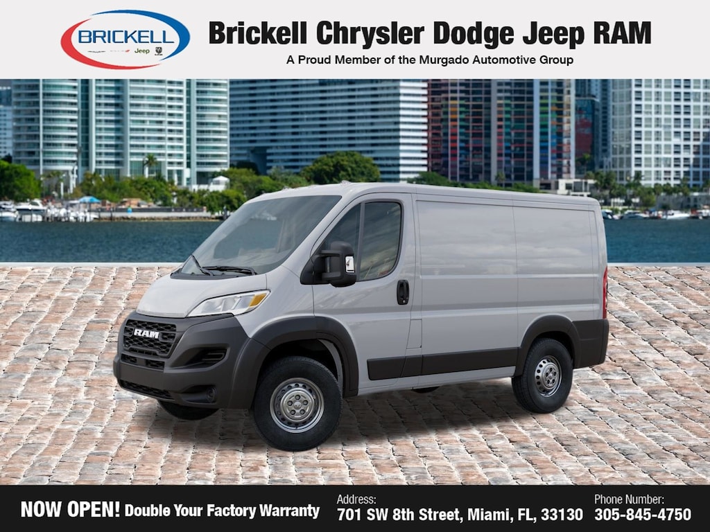 Price includes: $4000 - 2026 National Bonus Cash . Exp. 04/30/2026 Discover Your Next Vehicle at Brickell Chrysler Dodge Jeep Ram Welcome to Brickell CDJR, where we go beyond selling cars. We double the factory powertrain warranty, giving you added peace of mind. Our dealership offers one of the largest new car inventories in the region, ensuring you find the right vehicle Prices displayed do not included our Perma-plate. Our state-of-the-art service department is the largest in the country and is open seven days a week from 7 AM to 9 PM. Visit us at 701 SW 8th St, Miami, FL 33130, or call 305-777-2800 to learn more and schedule a test drive. The displayed price includes an incentive for financing with Brickell CDJR Finance Company. Outside financing and bank drafts are not accepted. All pre-owned vehicle exports are subject to an export fee. Prices apply only to customers who live, work, or worship in Broward, Miami-Dade, Palm Beach, Monroe, Collier, Hendry, Lee, Glades, Martin, St. Lucie, Okeechobee, Manatee, Hillsborough, Osceola, or Orange County. Customers outside these counties will pay an additional $ Taxes, title, registration, and dealer fees apply. Factory MSRP: $50,795 Bright White Clearcoat 2026 Ram ProMaster 1500 Low Roof FWD 9-Speed Automatic 3.6L V6 24V VVT