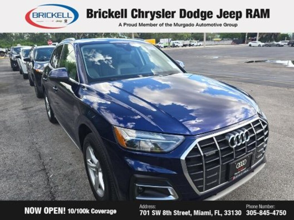 Blue Metallic 2021 Audi Q5 45 Premium quattro quattro 7-Speed Automatic S tronic 2.0L Turbocharged Gray Leather.