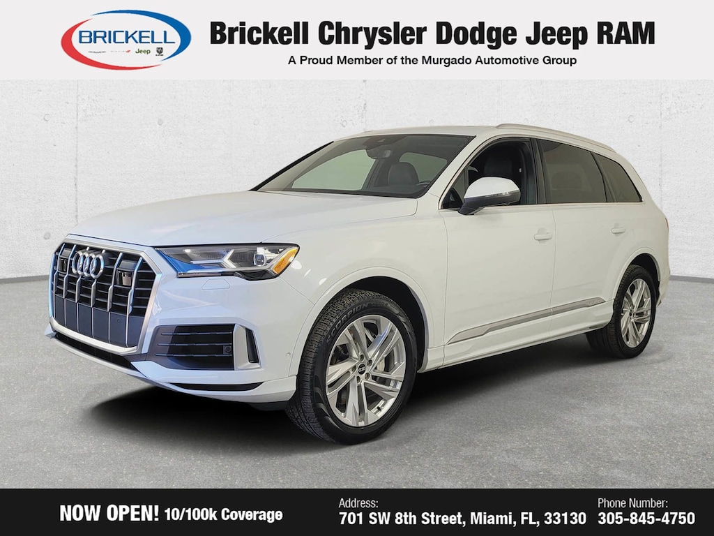 At Brickell CDJR, we make buying a pre-owned vehicle easy and stress-free. Every pre-owned vehicle is thoroughly inspected to ensure quality and reliability. For added confidence, we include a 10-year/100,000-mile powertrain warranty on all non-European brands at no additional cost. Our dealership offers one of the largest selections of pre-owned inventory in the region, so you can find the right car, truck, or SUV for your needs. Our state-of-the-art service department, the largest in the country, is open seven days a week from 7 AM to 9 PM, ensuring your vehicle stays in top condition. Visit us at 701 SW 8th St, Miami, FL 33130, or call 305-777-2800 to learn more and schedule a test drive. The displayed price includes an incentive for financing with Brickell CDJR Finance Company. Price does not included our Perma-Plate .Outside financing and bank drafts are not accepted. All pre-owned vehicle exports are subject to an export fee. Taxes, title, registration, and dealer fees apply.