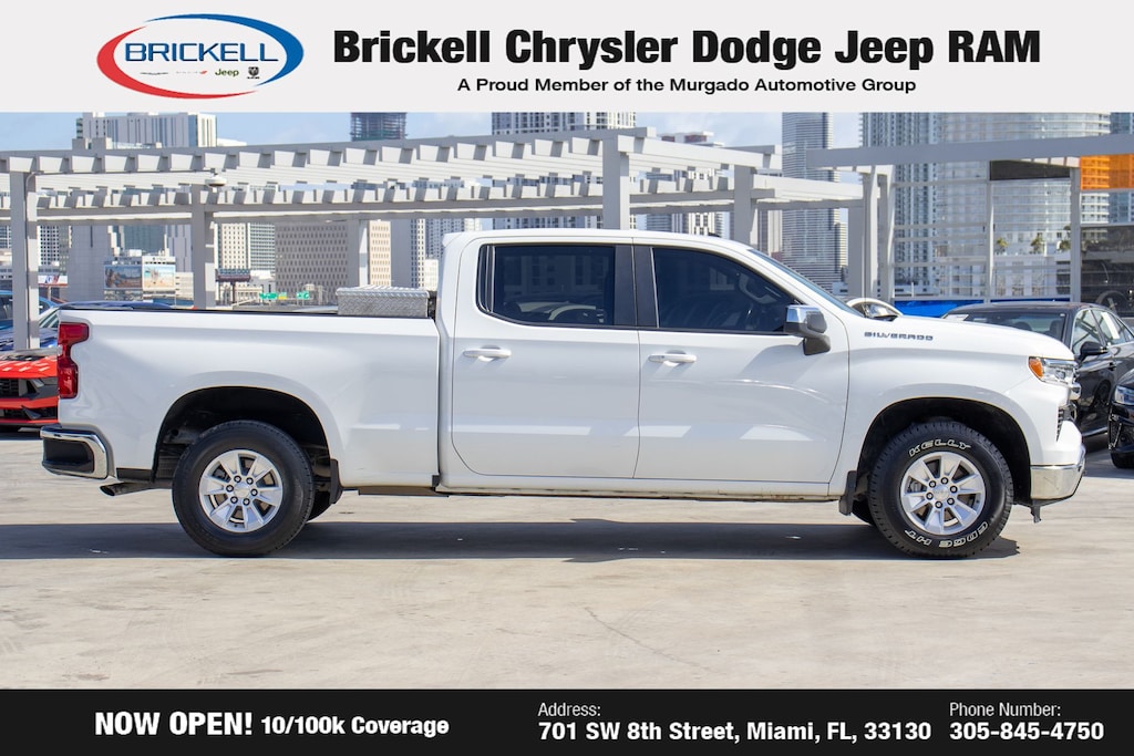 Visit us at 701 SW 8th St, Miami, FL 33130, or call 305-777-2800 to schedule a test drive and experience the power and versatility of this 2023 Chevrolet Silverado 1500 LT for yourself. The displayed price includes an incentive for financing with Brickell CDJR Finance Company. Price does not included our Perma-Plate. Outside financing and bank drafts are not accepted. All pre-owned vehicle exports are subject to an export fee. Taxes, title, registration, and dealer fees apply.
