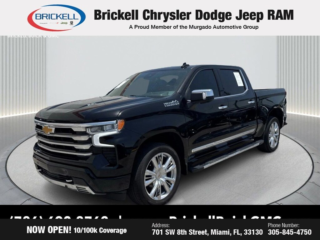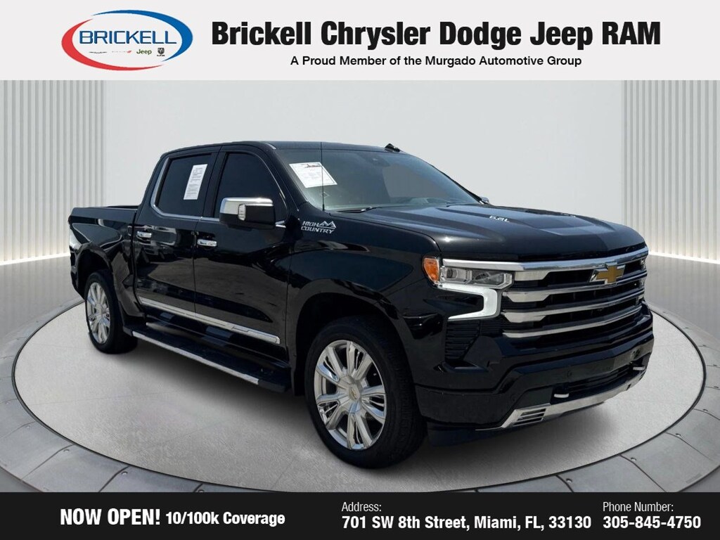 Black 2023 Chevrolet Silverado 1500 High Country 4WD 10-Speed Automatic EcoTec3 6.2L V8 10-Speed Automatic, 4WD, Jet Black/Nightshift Blue Leather.