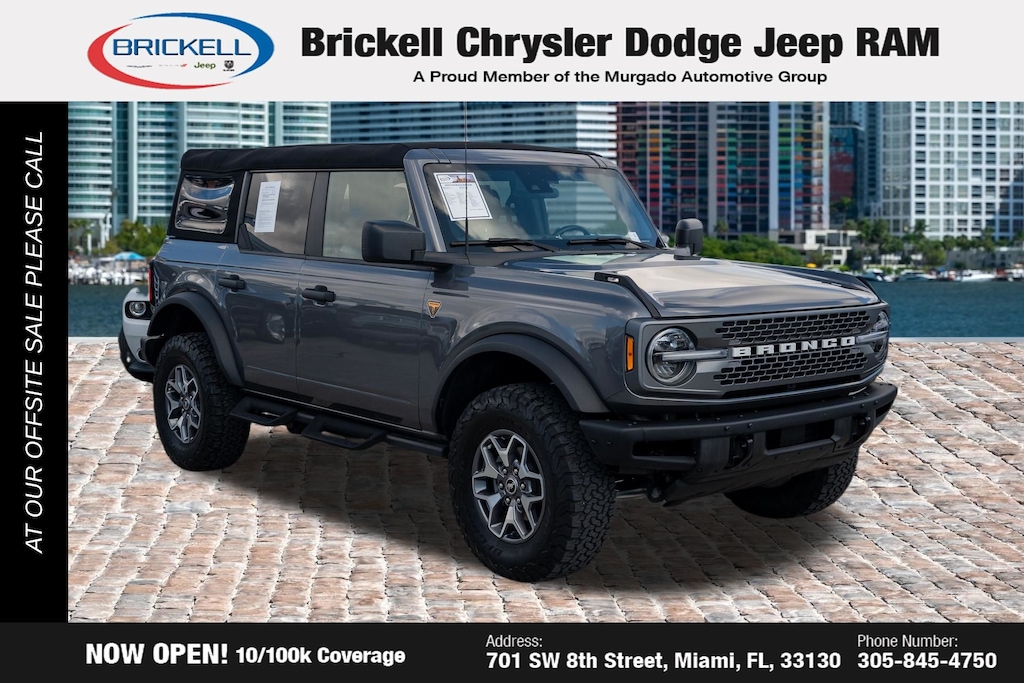 At Brickell CDJR, we make buying a pre-owned vehicle easy and stress-free. Every pre-owned vehicle is thoroughly inspected to ensure quality and reliability. For added confidence, we include a **10-year/100,000-mile powertrain warranty on all non-European brands** at no additional cost. Our dealership offers one of the largest selections of pre-owned inventory in the region, so you can find the right car, truck, or SUV for your needs. Our state-of-the-art service department, the largest in the country, is open seven days a week from 7 AM to 9 PM, ensuring your vehicle stays in top condition. Visit us at 701 SW 8th St, Miami, FL 33130, or call 305-777-2800 to learn more and schedule a test drive. The displayed price includes an incentive for financing with Brickell CDJR Finance Company. Price does not included our Perma-Plate .Outside financing and bank drafts are not accepted. All pre-owned vehicle exports are subject to an export fee. Taxes, title, registration, and dealer fees apply.