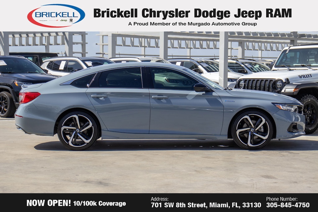 Experience the joy of driving with this remarkable 2022 Honda Accord Hybrid Sport. Visit us at Brickell CDJR, located at 701 SW 8th St, Miami, FL 33130, or call 305-777-2800 to schedule a test drive and see for yourself why this car is the perfect choice for your next adventure.